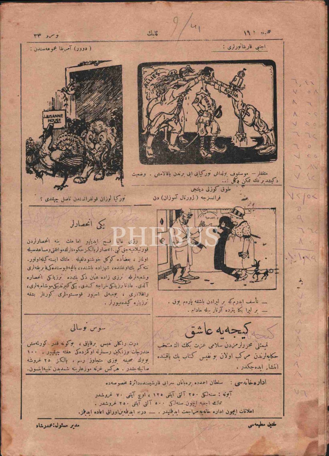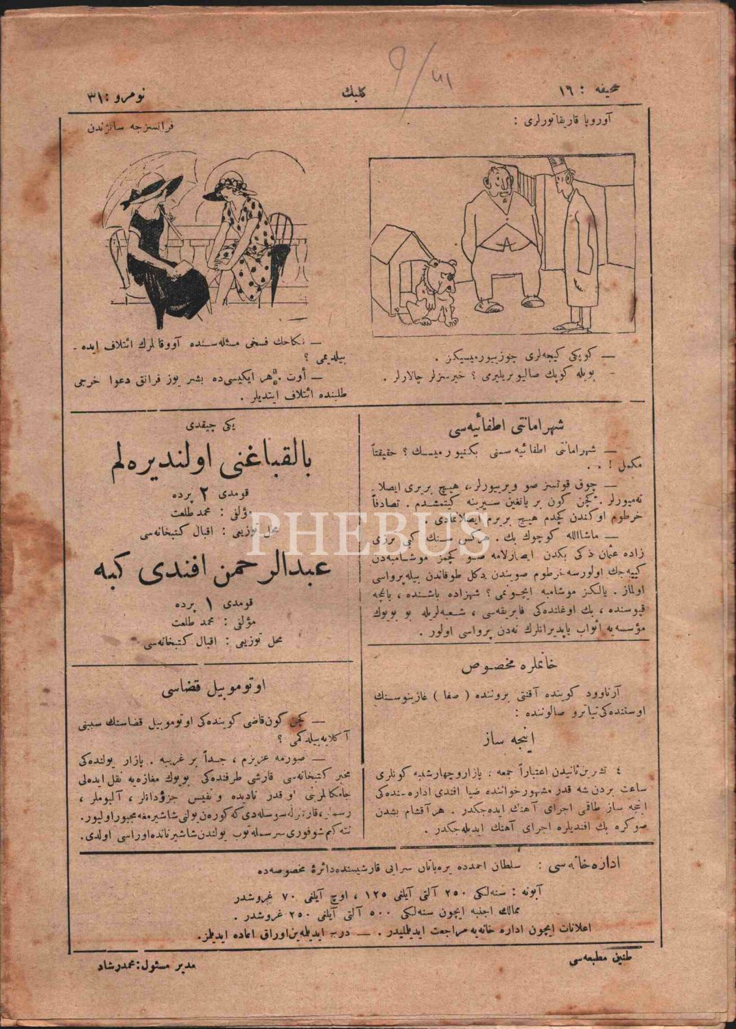 Edebî mizah dergisi KELEBEK´in 1339 tarihli 31-37. sayıları, 21x28 cm