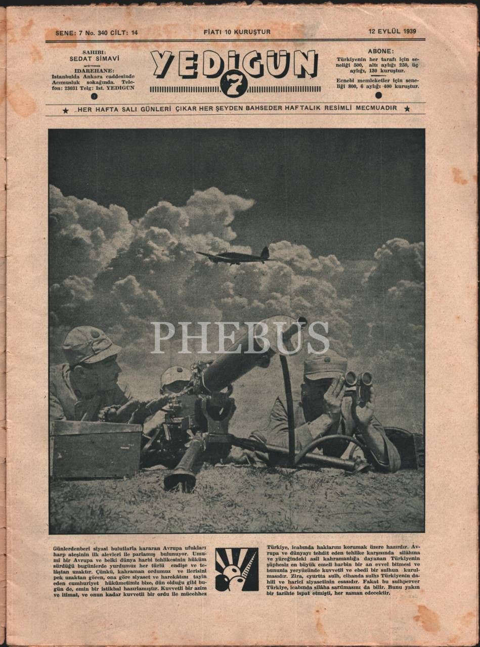 1939 tarihli YEDİGÜN dergisinin Atatürk ve İsmet İnönü görselli sayısı, 25x34 cm
