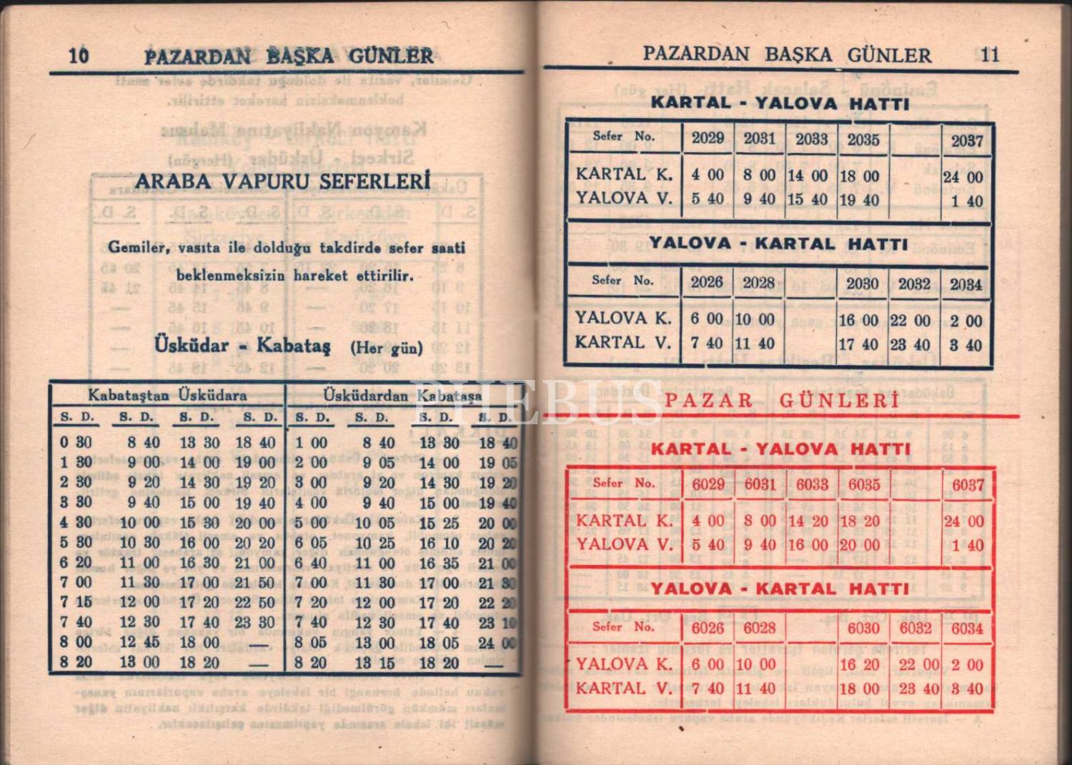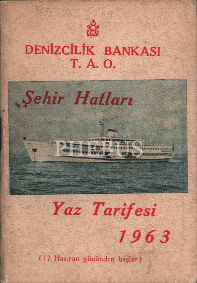 DENİZCİLİK BANKASI T. A. O. Şehir Hatları Yaz Tarifesi- 1963, 89 sayfa, 10x14 cm