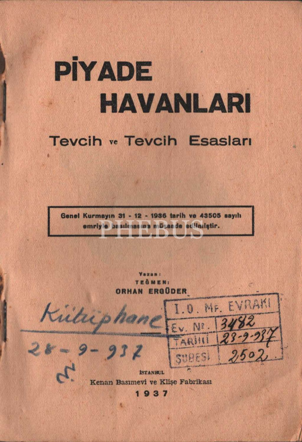 PİYADE HAVANLARI (Tevcih ve Tevcih Esasları), Orhan Ergüder, İstanbul 1937, Kenan Basımevi ve Klişe Fabrikası, 112 sayfa, 14x20 cm