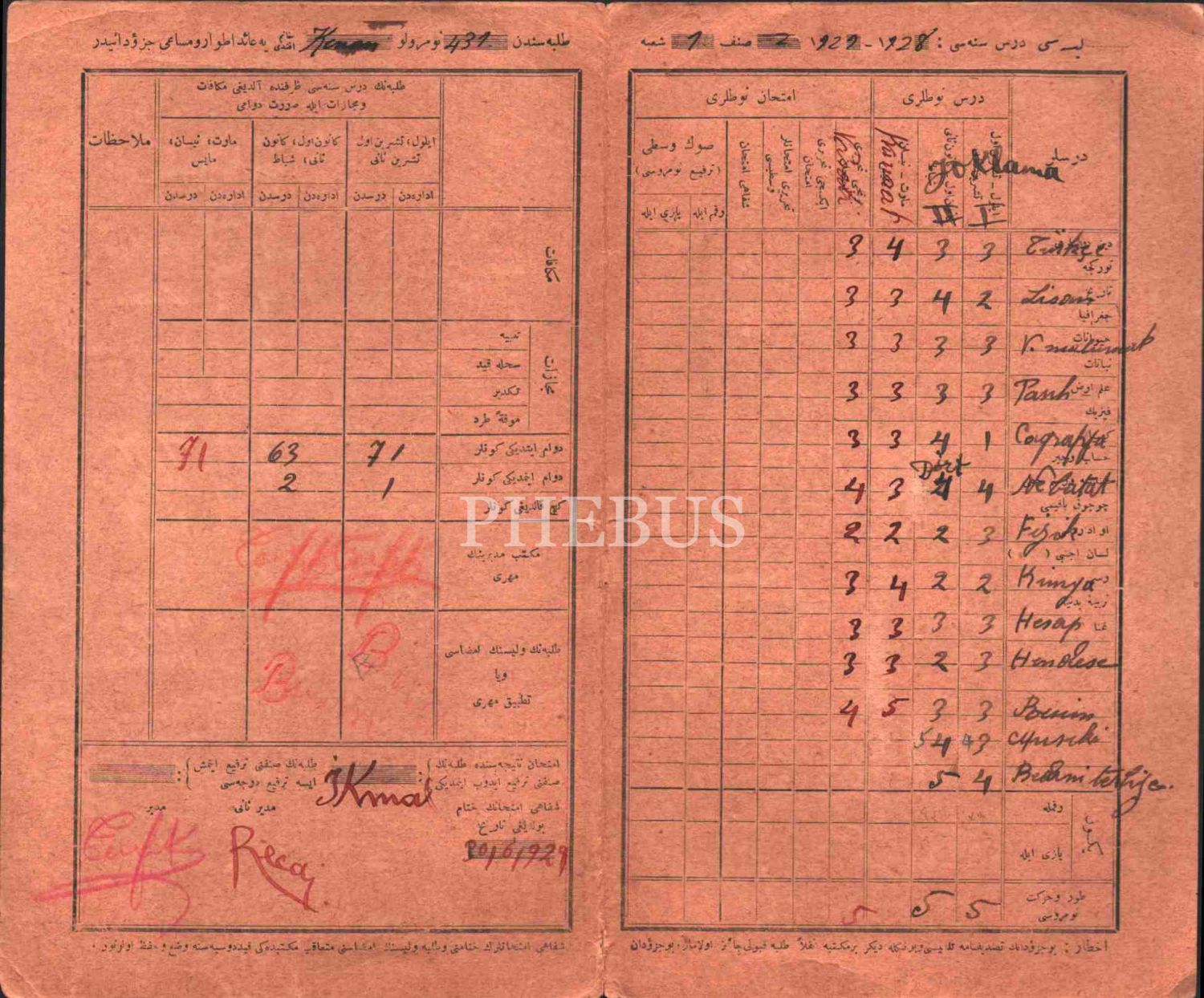 1929 tarihli, Kadıköy Lisesi karnesi, 12x20 cm