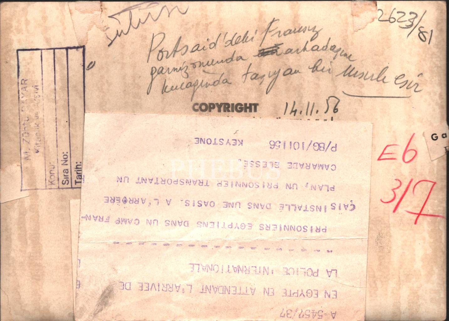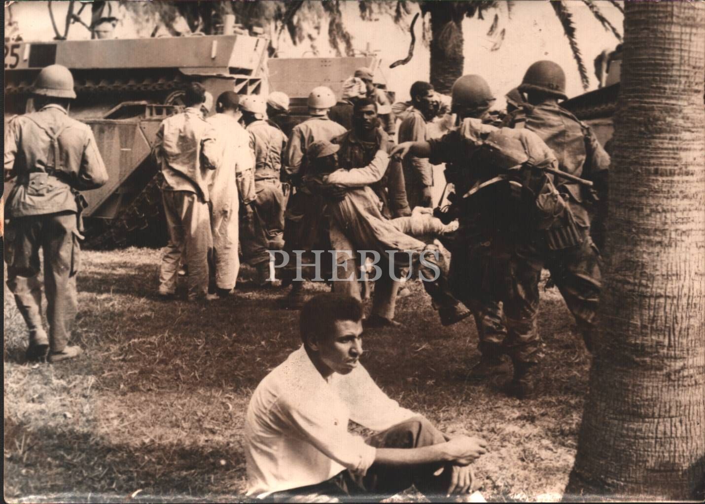 Siyasi tarih: arkadaşını kucağında taşıyan Mısırlı esir, 1956, 13x18,5 cm