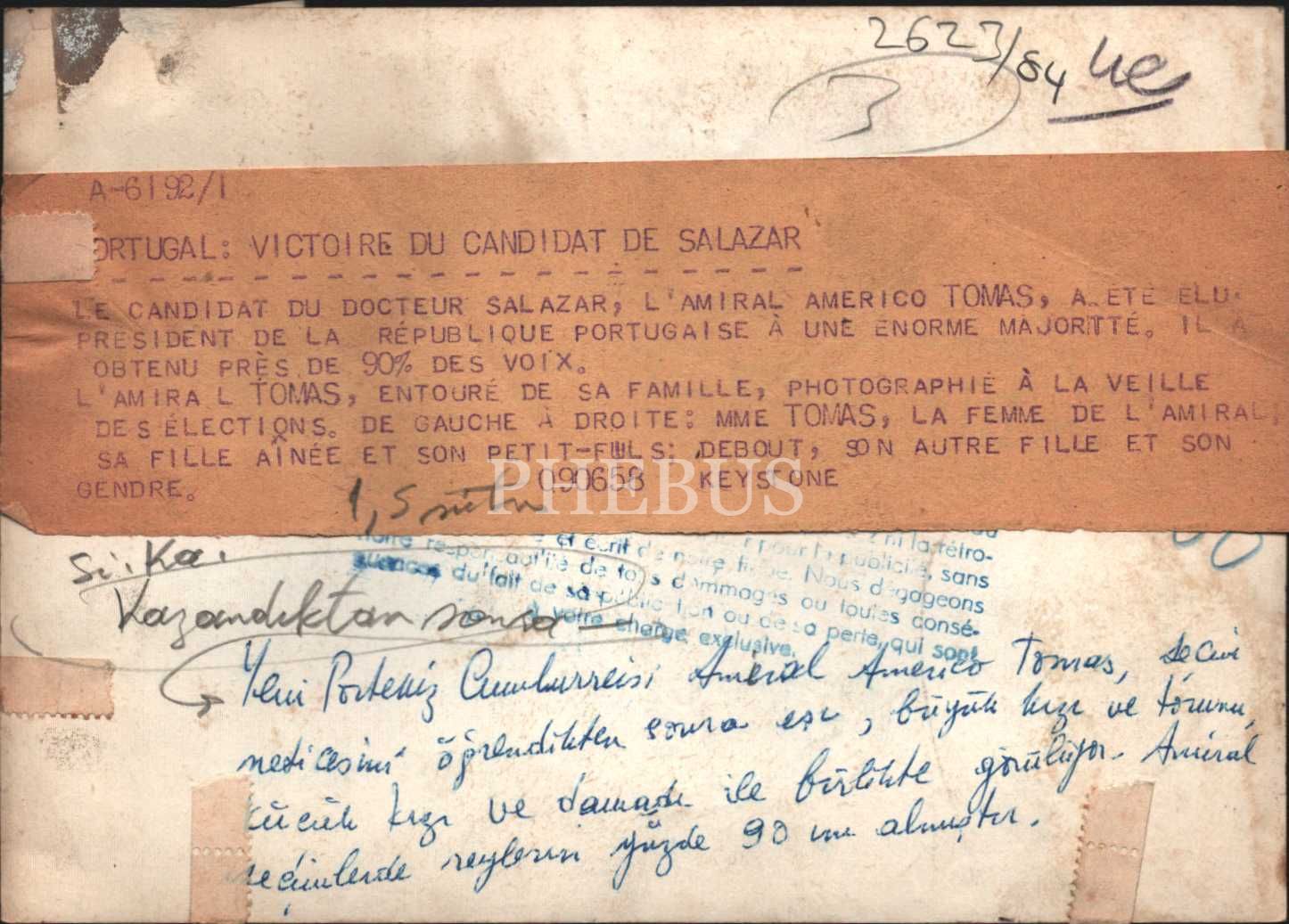Siyasi tarih: Portekizli amiral ve siyasetçi Américo de Deus Rodrigues Tomás (1894-1987), eşi, büyük kızı ve torunu ile birlikte, 13x18 cm