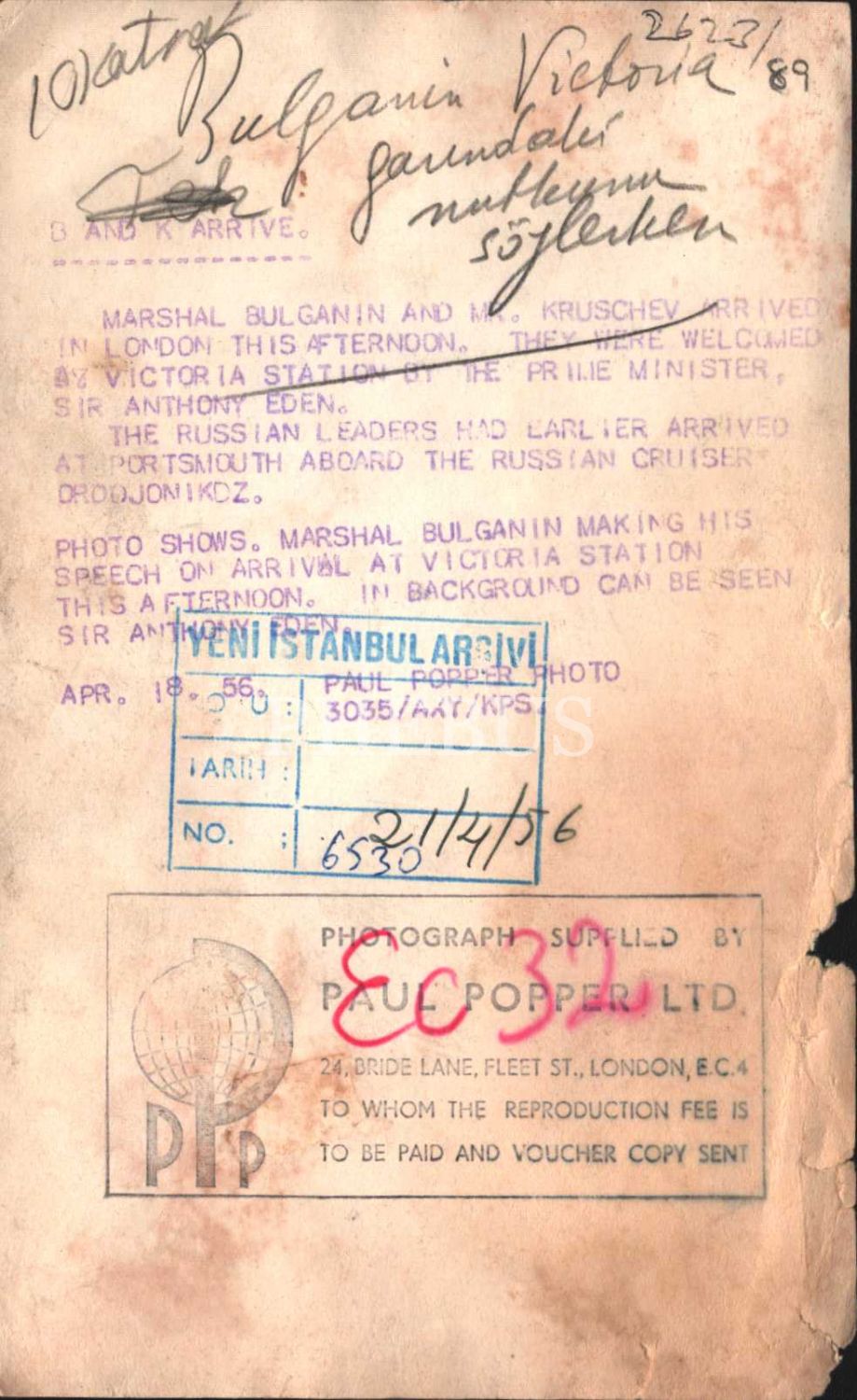 Siyasi tarih: Rus asker ve siyasetçi Nikolay Aleksandroviç Bulganin (1895-1975) Victoria garında, 12x20 cm, kenarları yıpranmış haliyle