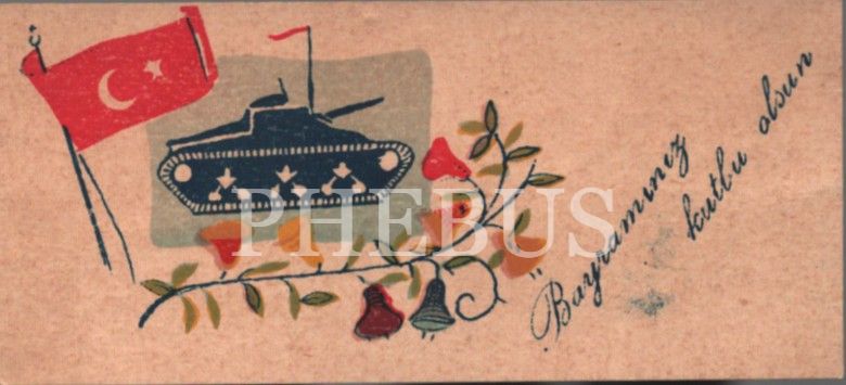 Türk bayrağı ve tank görselli bayram tebrik kartı