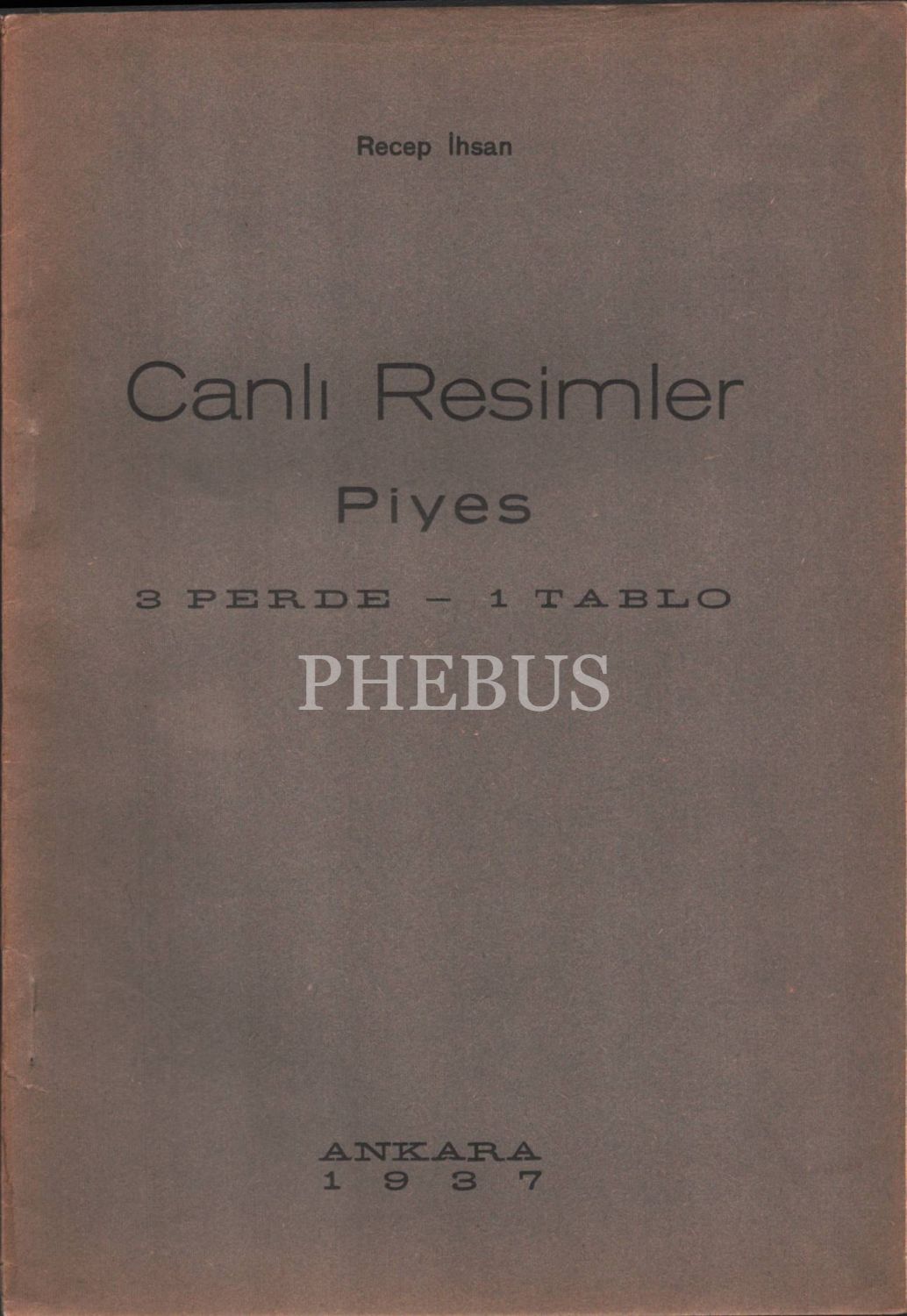 CANLI RESİMLER (Piyes), Recep İhsan, Ulus Basımevi, 1937, 36 sayfa