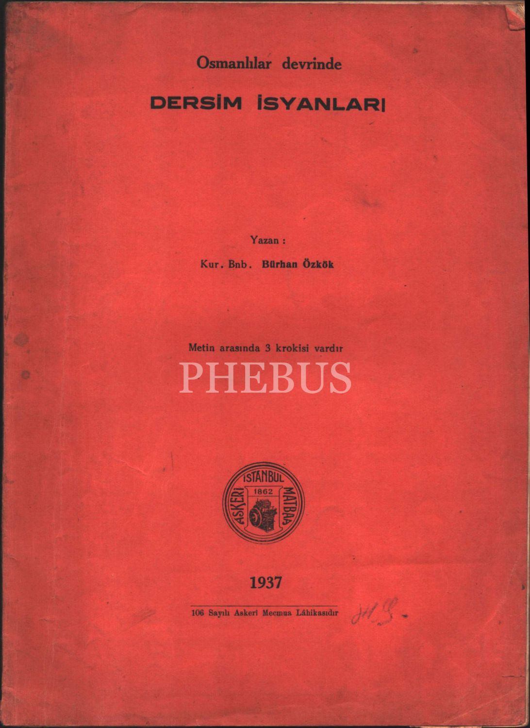 OSMANLILAR DEVRİNDE DERSİM İSYANLARI, Kur. Bnb. Bürhan Özkök, İstanbul Askeri Matbaası, 1937, 69 sayfa