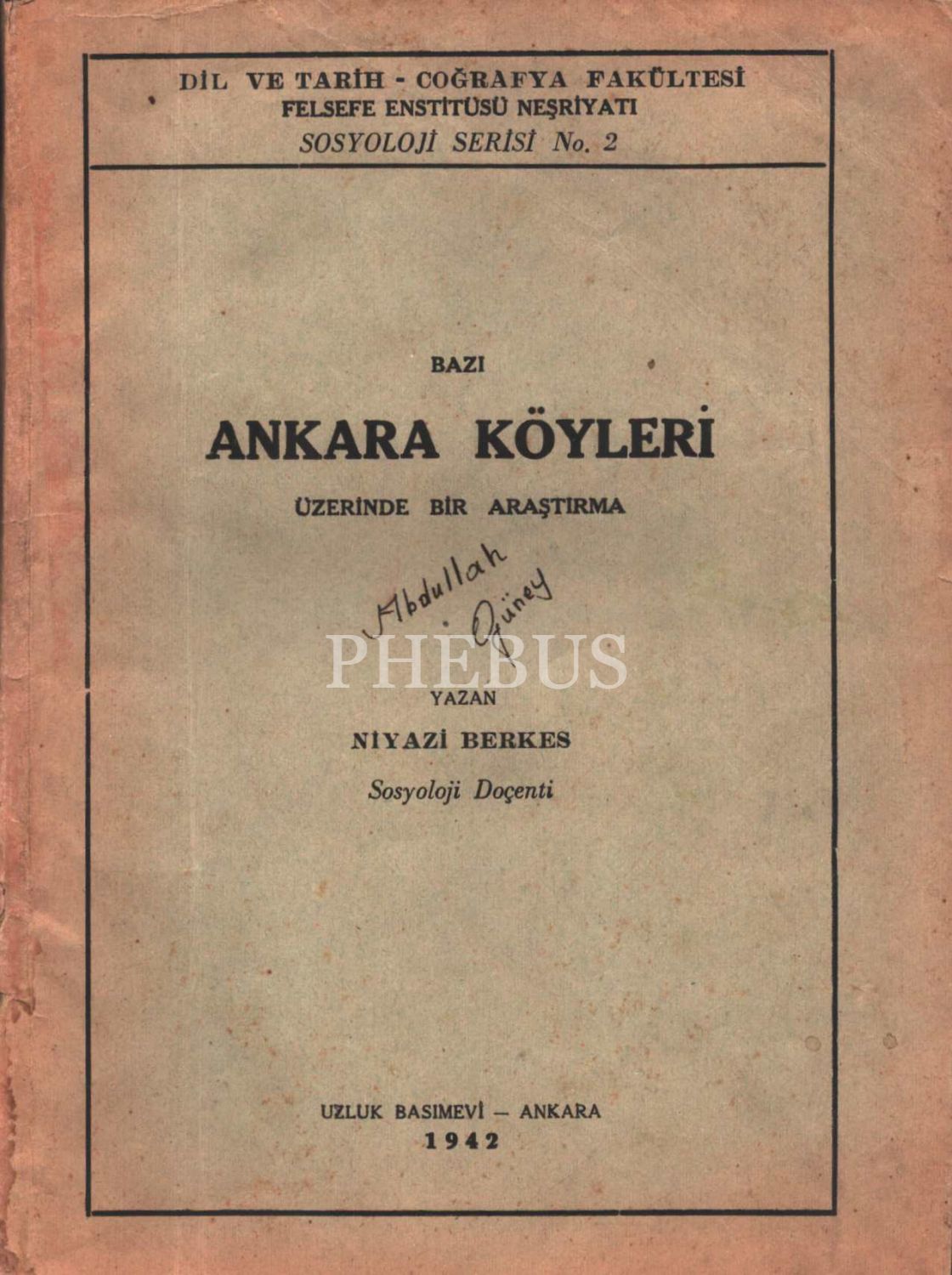 BAZI ANKARA KÖYLERİ ÜZERİNDE BİR ARAŞTIRMA, Niyazi Berkes, Uzluk Basımevi, 1942, 172 sayfa