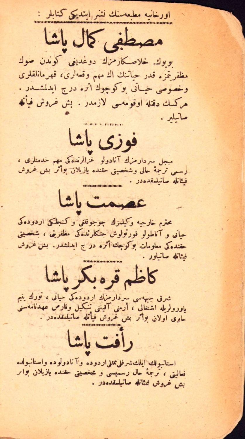 Güzide Serdarımız Ali Fuat Paşa ve Pederi Merhum İsmail Fazıl Paşa , Peyami Safa, Orhaniye Matbaası, Osmanlıca, 23 sayfa, 11x19 cm