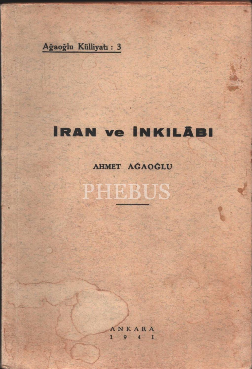 İRAN VE İNKILÂBI, Ahmet Ağaoğlu, Zerbamat Basımevi, 1941, 118 sayfa