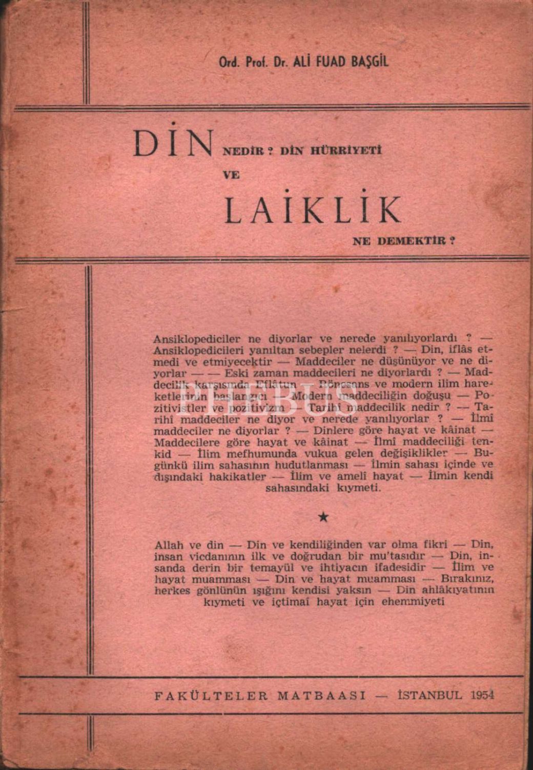 DİN NEDİR? DİN HÜRRİYETİ VE LAİKLİK NE DEMEKTİR?, Ali Fuad Başgil, Fakülteler Matbaası, 1954, 59 sayfa