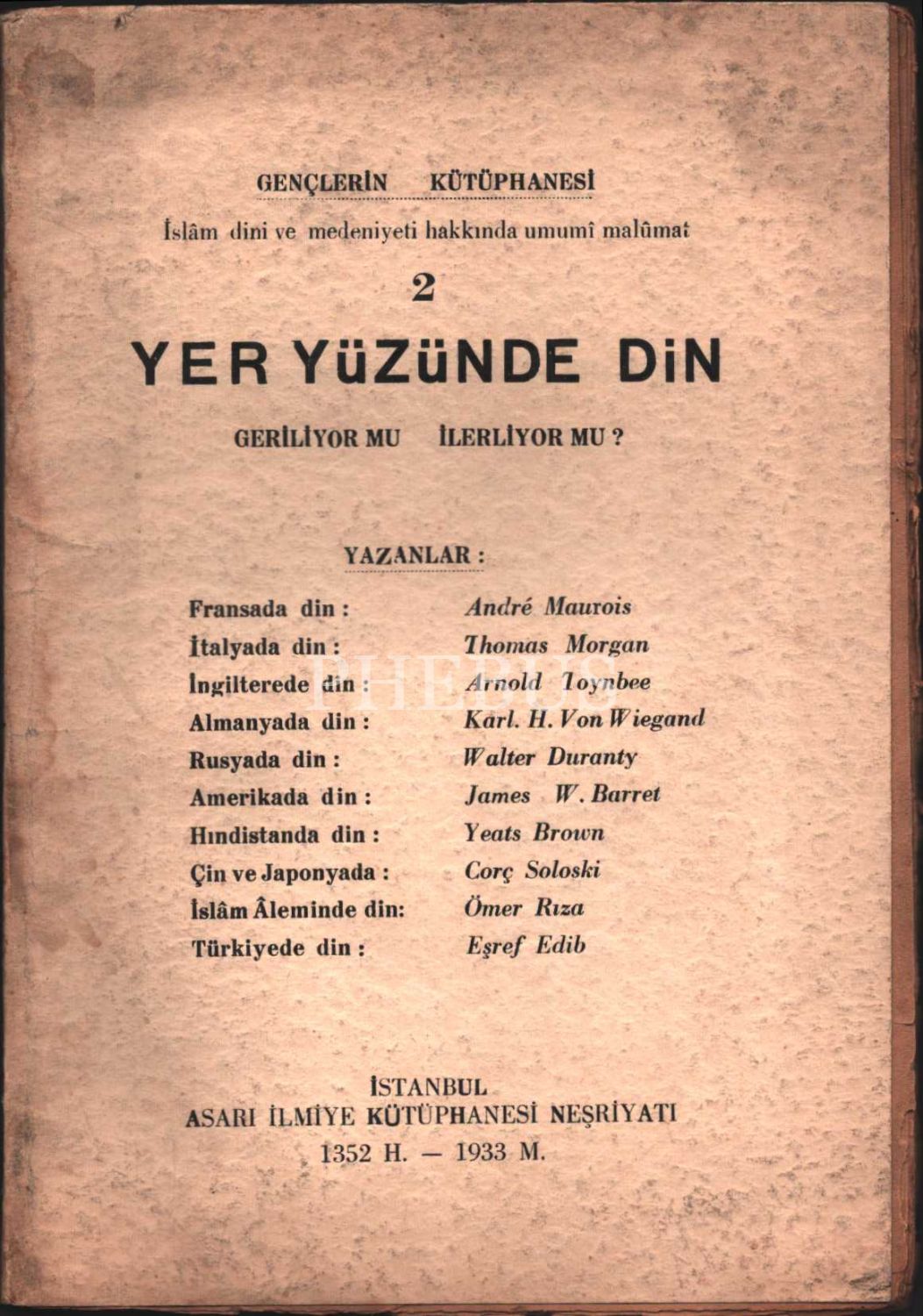 YER YÜZÜNDE DİN (Geriliyor mu İlerliyor mu?), Asarı İlmiye Kütüphanesi Neşriyatı, 1933, 55 sayfa