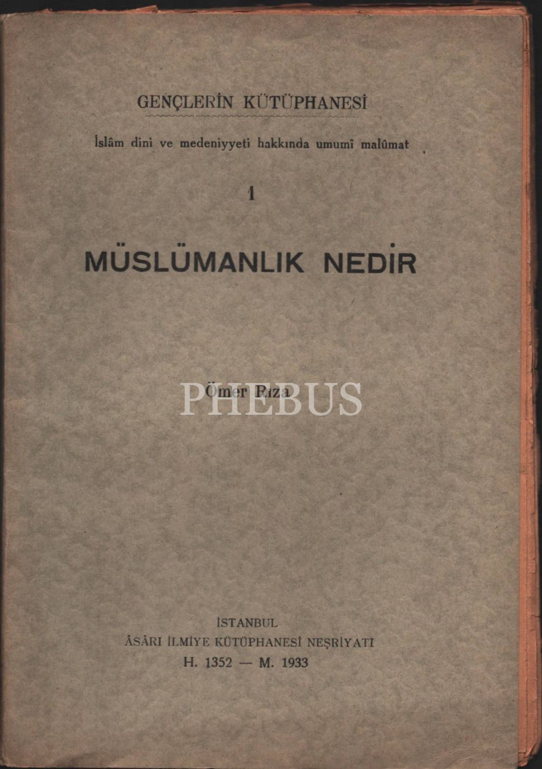 MÜSLÜMANLIK NEDİR, Ömer Rıza, Âsârı İlmiye Kütüphanesi Neşriyatı, 1933, 52 sayfa
