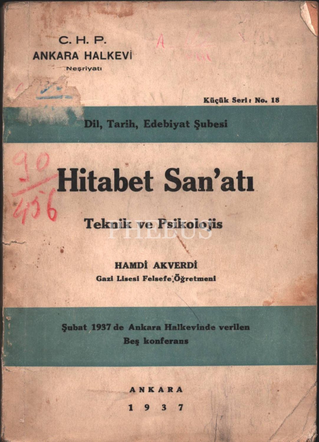 HİTABET SAN´ATI, Hamdi Akverdi, C. H. P. Ankara Halkevi Neşriyatı, 1937, 86 sayfa