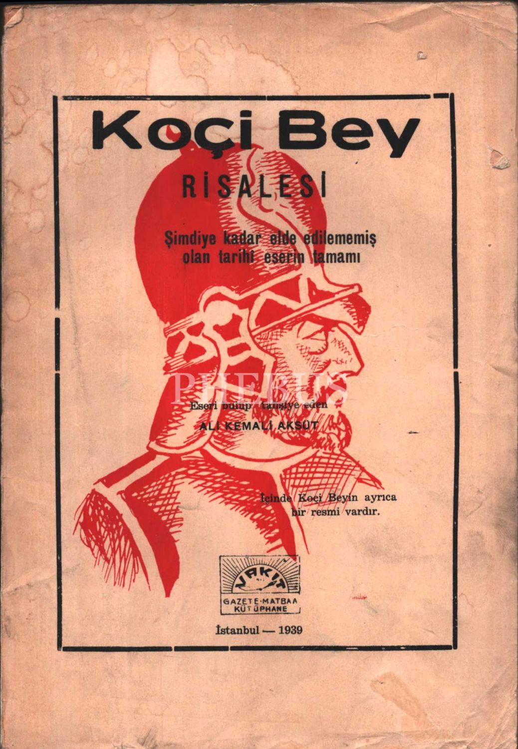 KOÇİ BEY RİSALESİ (Şimdiye Kadar Elde Edilememiş Olan Tarihî Eserin Tamamı), Ali Kemalî Aksüt, Vakıt Gazete- Matbaa- Kütüphane, 1939, 144 sayfa