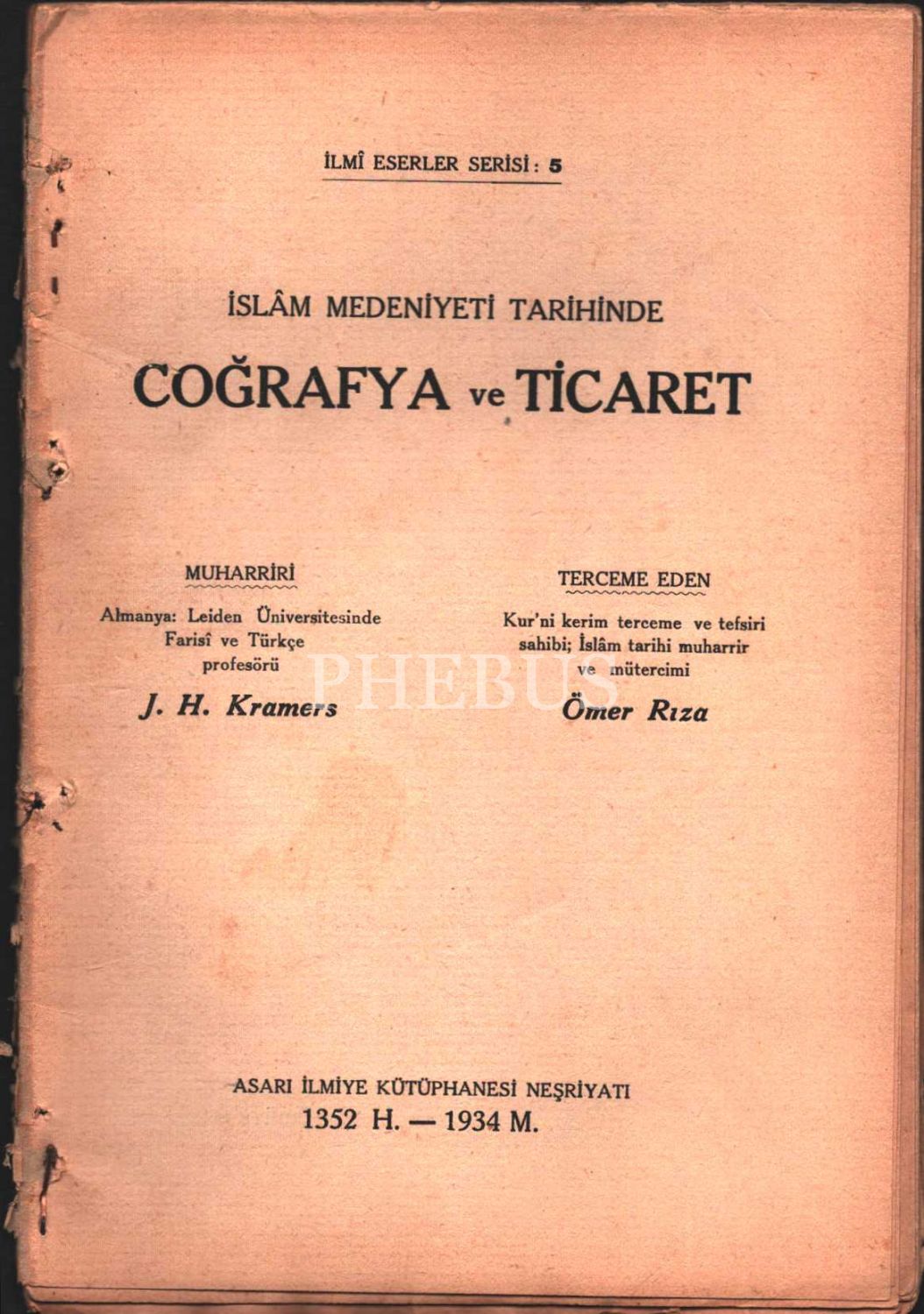İSLÂM MEDENİYETİ TARİHİNDE COĞRAFYA VE TİCARET, J. H. Kramers, çev. Ömer Rıza, Asarı İlmiye Kütüphanesi Neşriyatı, 1934, 48 sayfa