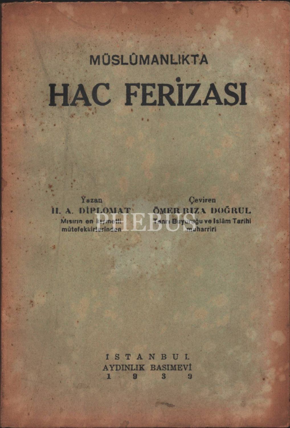MÜSLÜMANLIKTA HAC FERİZASI, A. Diplomat, çev. Ömer Rıza Doğrul, Aydınlık Basımevi, 1939, 47 sayfa