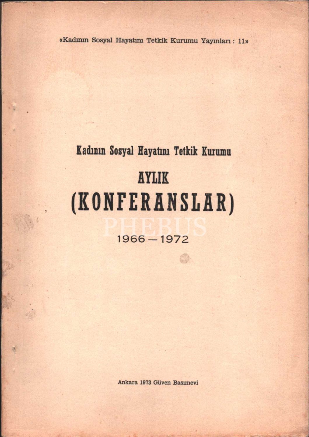 KADININ SOSYAL HAYATINI TETKİK KURUMU (Aylık Konferanslar), Güven Basımevi, 1973, 120 sayfa