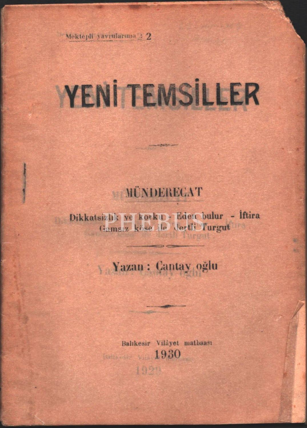 YENİ TEMSİLLER, Çantayoğlu, Balıkesir Vilayet Matbaası, 1930, 85 sayfa