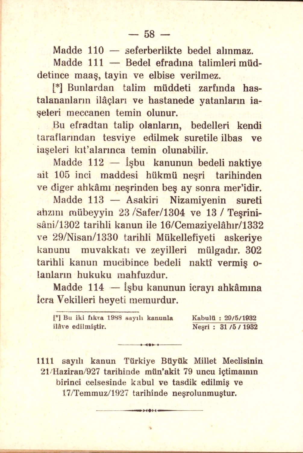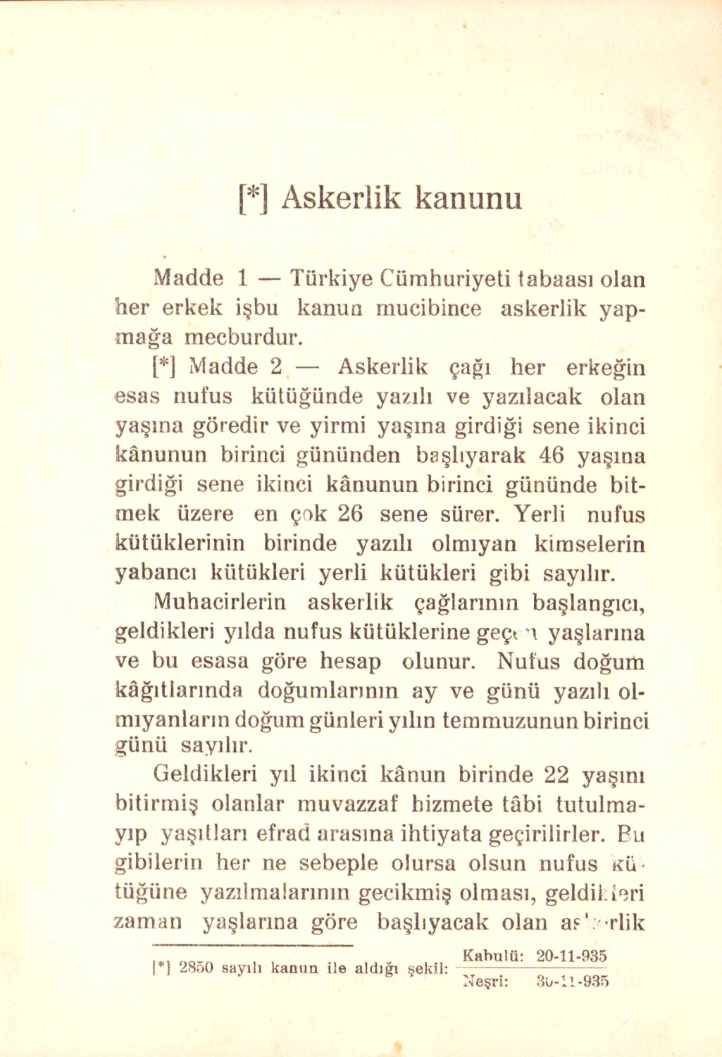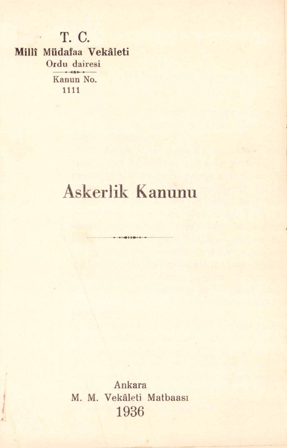 Askerlik Kanunu, M. M. Vekaleti Matbaası, 1936, 58 sayfa, 13x19 cm
