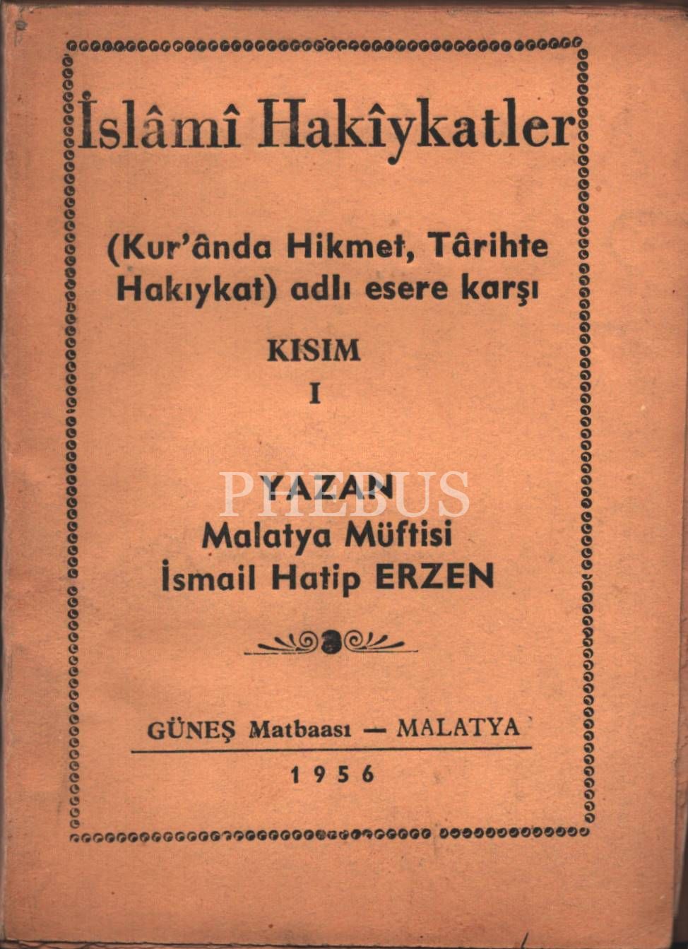 İSLÂMÎ HAKÎYKATLER (I. Kısım), İsmail Hatip Erzen, Güneş Matbaası, 1956, 152 sayfa