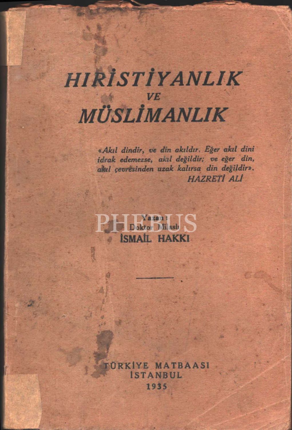 HIRİSTİYANLIK VE MÜSLİMANLIK, Milaslı İsmail Hakkı, Türkiye Matbaası, 1935, 136 sayfa