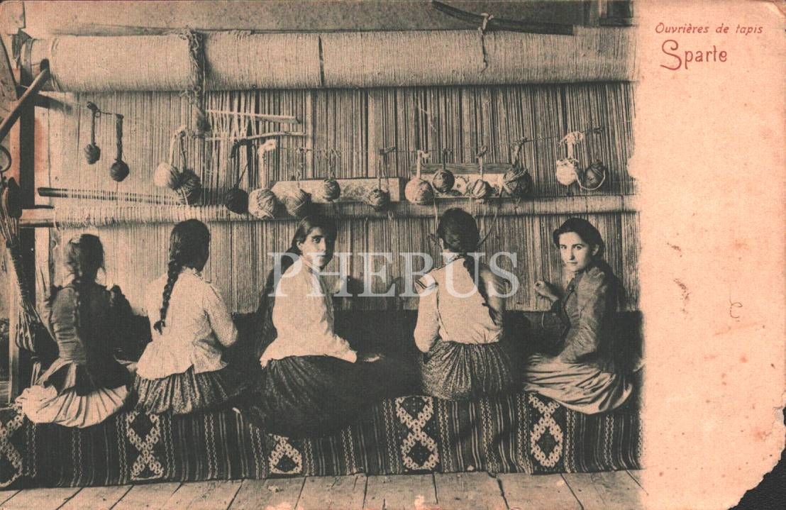 Meslek kartpostalı: halı dokumacılar, Sparta