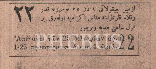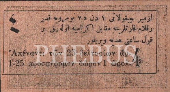 Kol saati ödüllü Osmanlıca-Ermenice-Rumca-Fransızca İzmir Çikolatı kuponu (5 adet), 4x8 cm