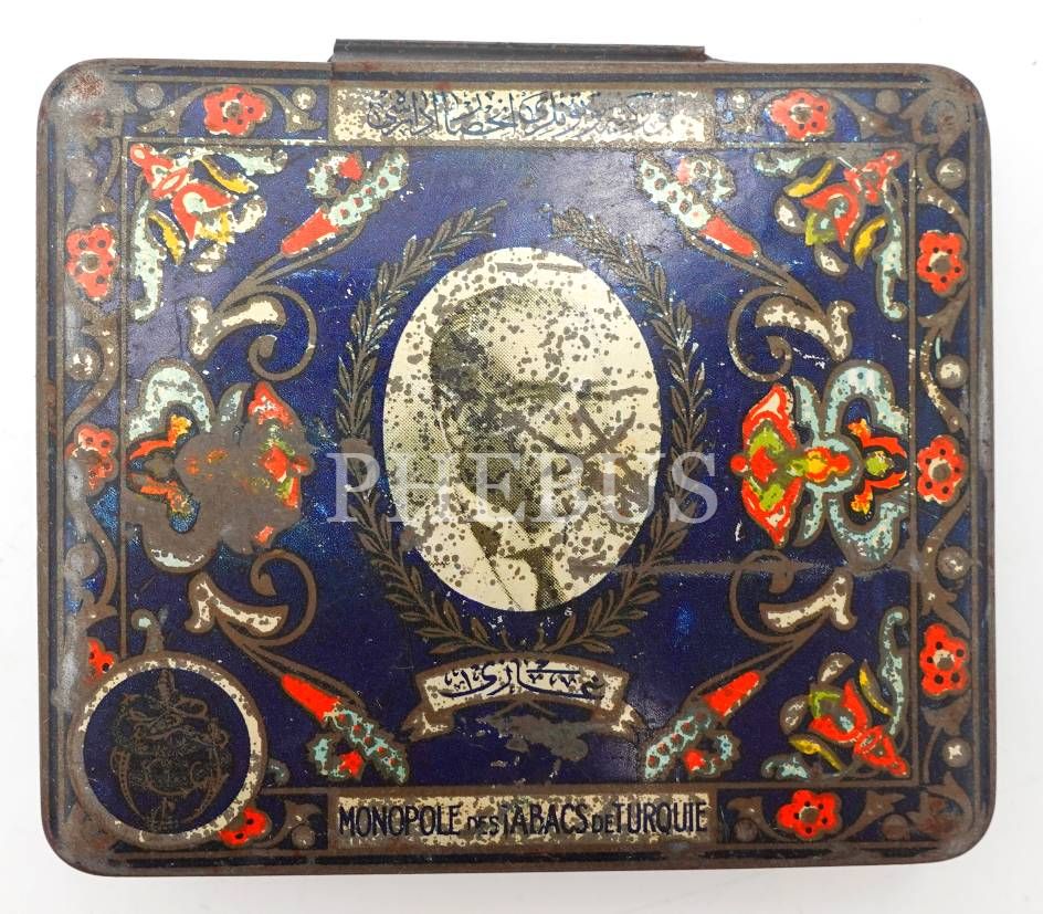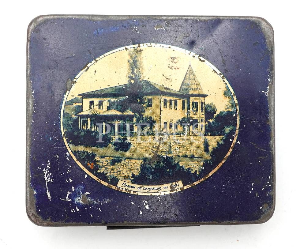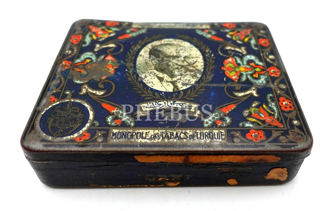 Atatürk ve Gazi Köşkü görselli, Türkiye Tütünleri İnhisar İdaresi teneke sigara kutusu, 2x7x8 cm