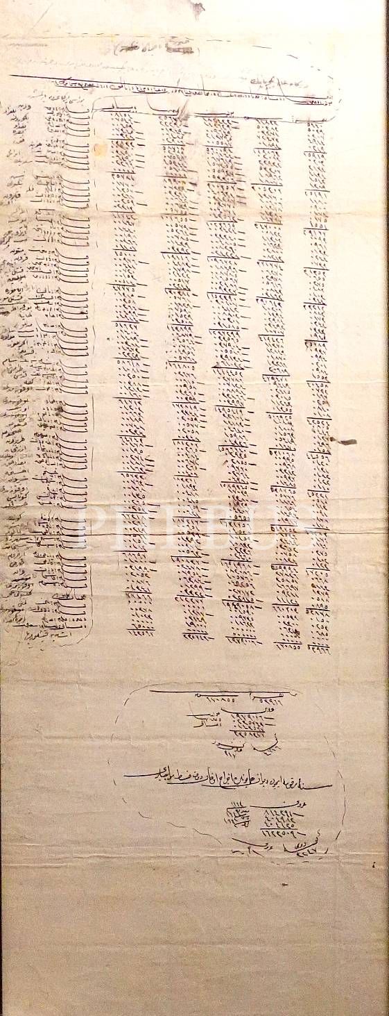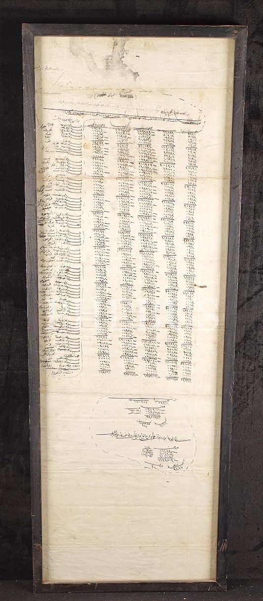 Rumeli ve Anadolu kaleleri muhafızları ve yeniçerilerinin mevacib defteri, 1164(?) tarihli, çerçeve: 28x77 cm
