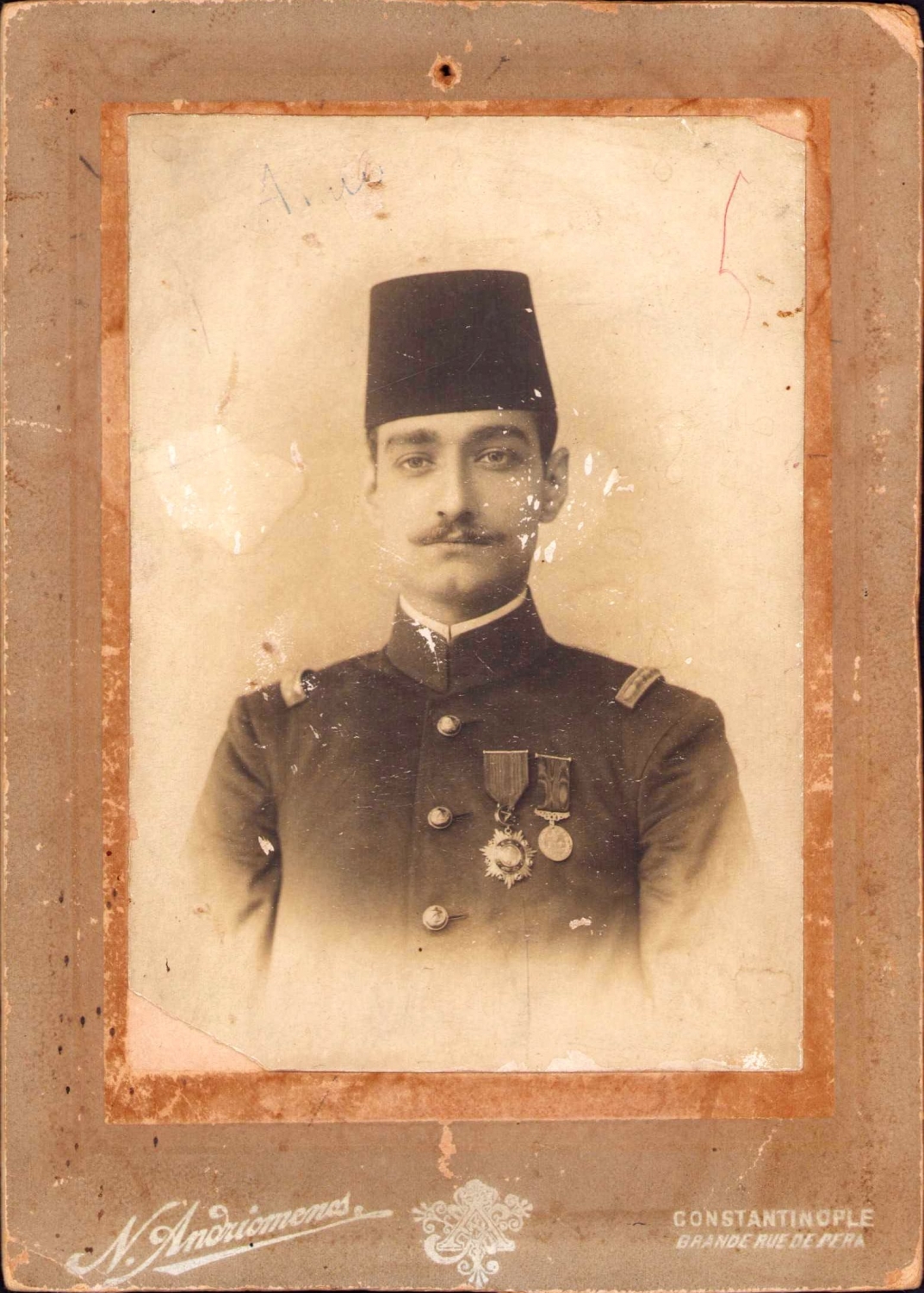 Osmanlı madalyalı nişanlı fesli subay, Nicolas Andriomenos Fotoğrafhanesi, Constantinople, 13x18 cm