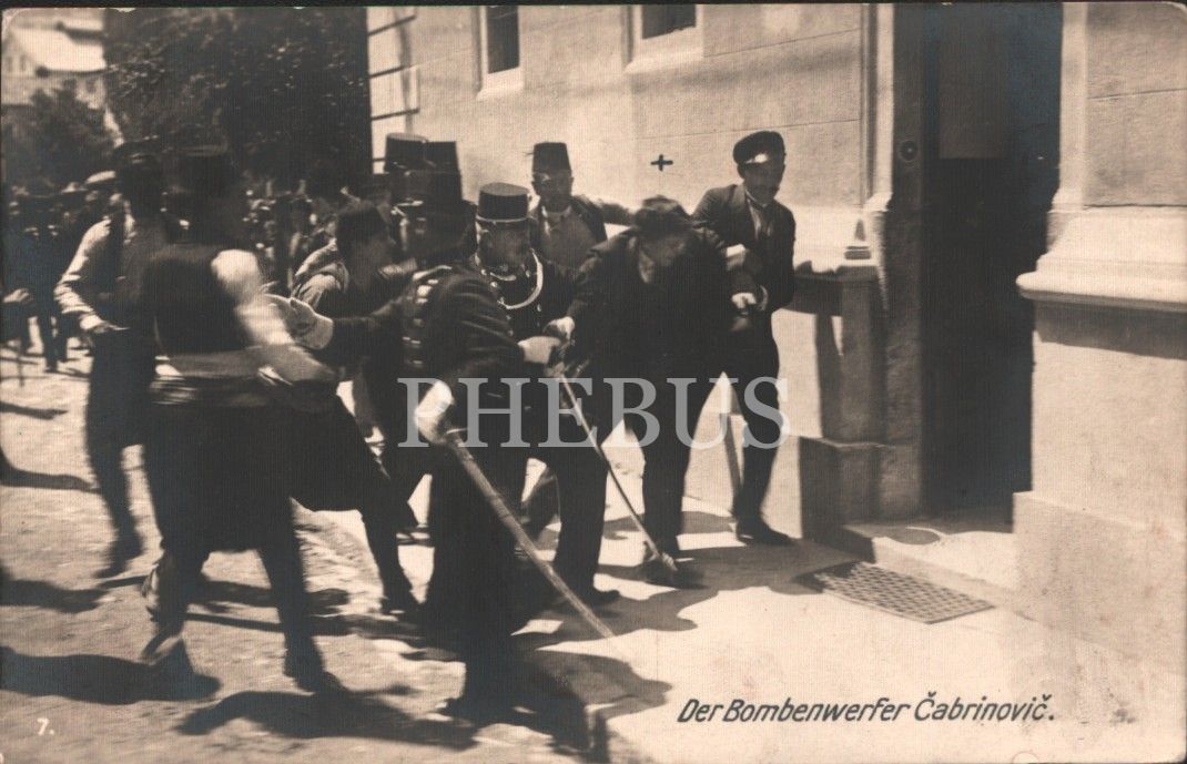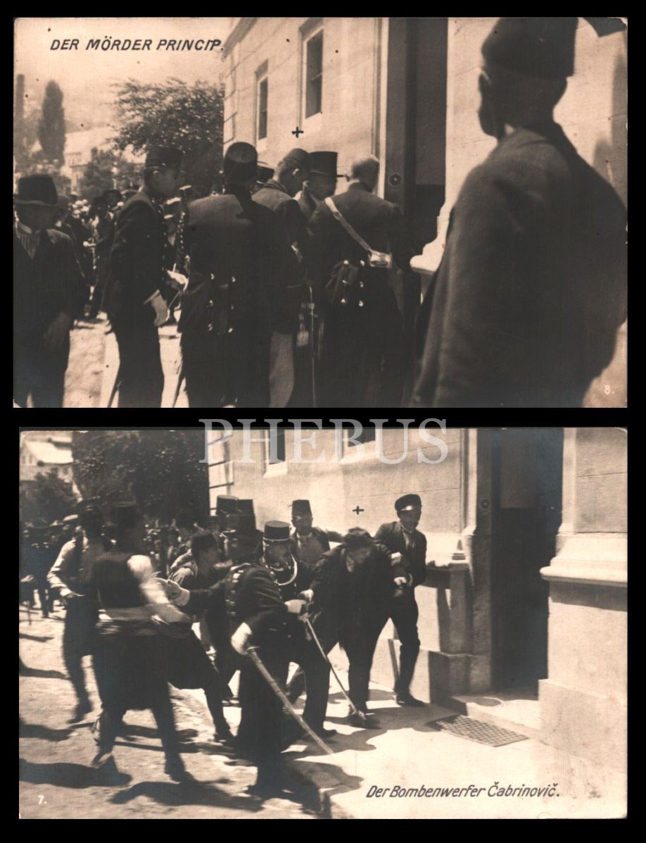 I. Dünya Savaşı´nın başlamasına sebep olan, Franz Ferdinand suikastinin failleri Sırp milliyetçi Gavrilo Princip ile Cabrinovic´in yakalanma anına ait 2 adet kartpostal