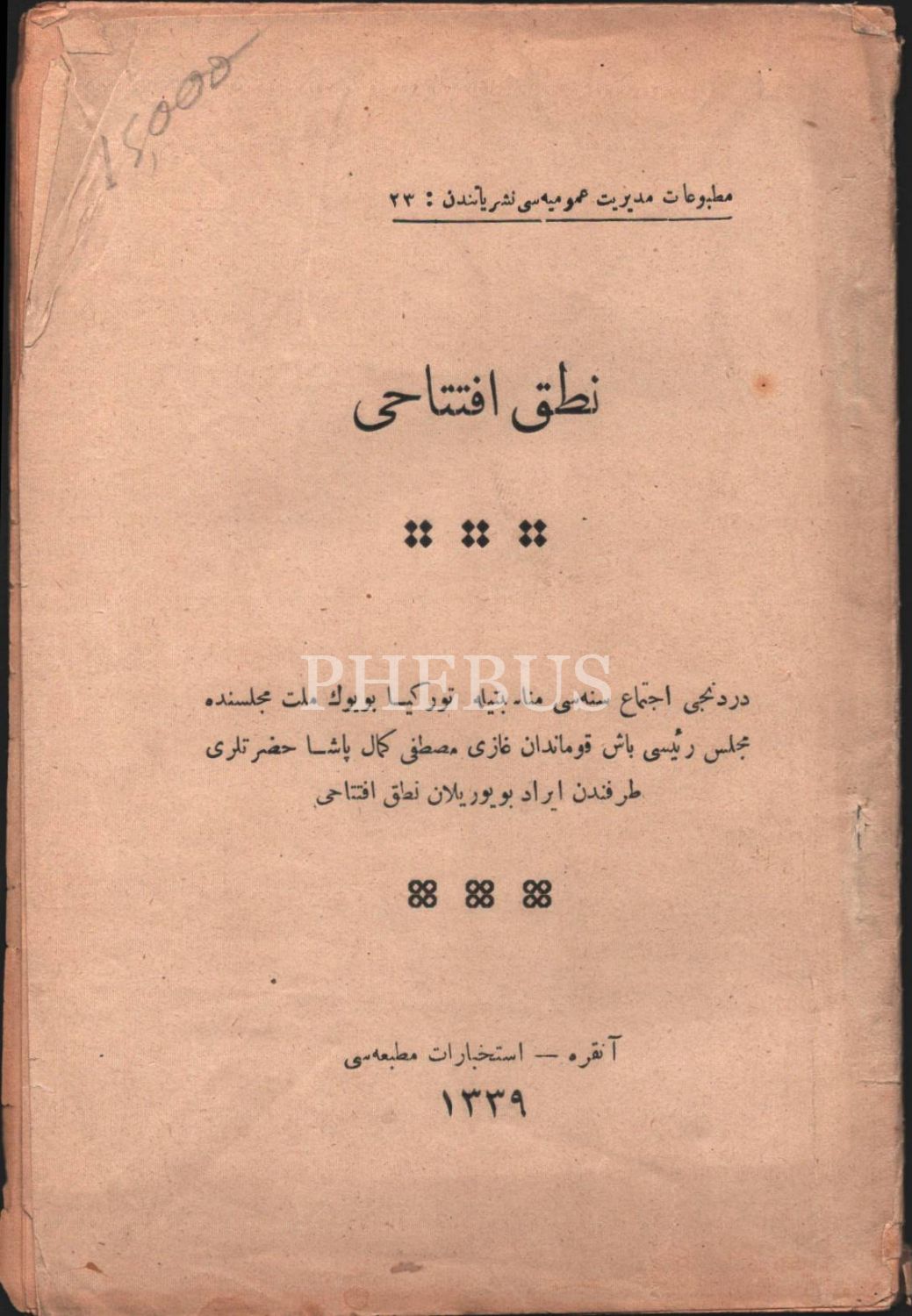 NUTK-I İFTİTÂHÎ [Açılış Nutku], Matbuat-ı Müdiriyet-i Umumiyyesi Neşriyatı, Ankara 1339, 55 s., 14x20 cm, sayfaları açılmamış haliyle