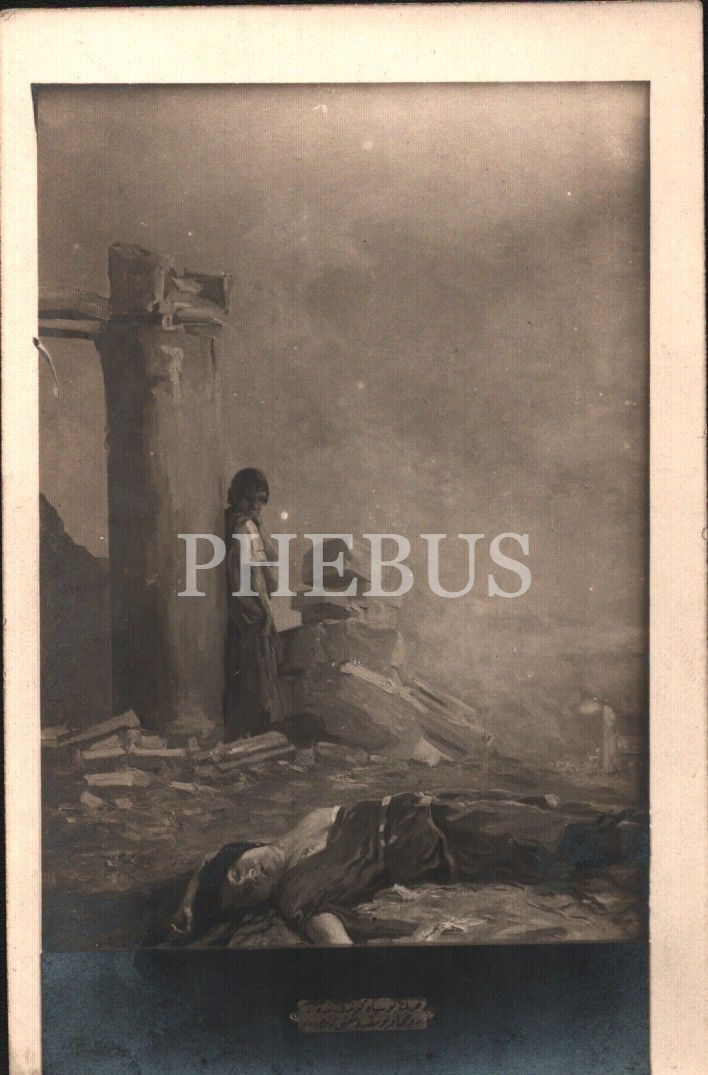 "Harbin bu siyah gündüzünde, Ruhu uyumakda na´şı zinde" dizelerinin yazılı olduğu mefkure kartı