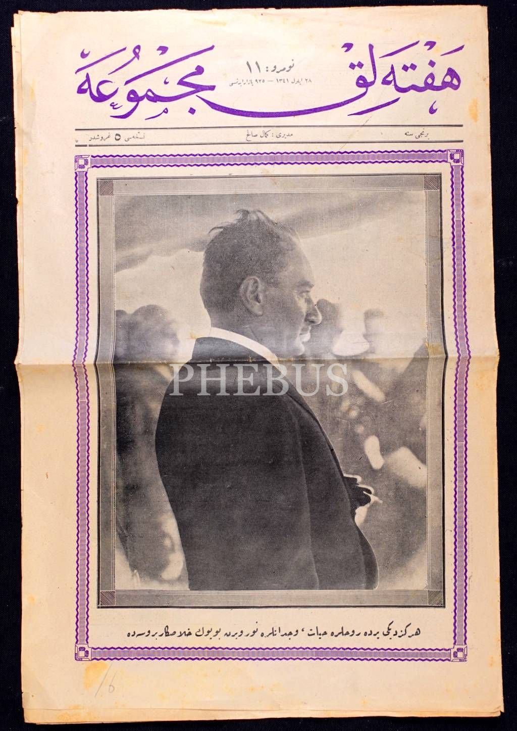 HAFTALIK MECMUA´nın "Her gezdiği yerde ruhlara hayat, vicdanlara nur veren Büyük Halaskâr [Atatürk] Bursa´da" başlıklı sayısı, 28 Eylül 1925, 32x48 cm