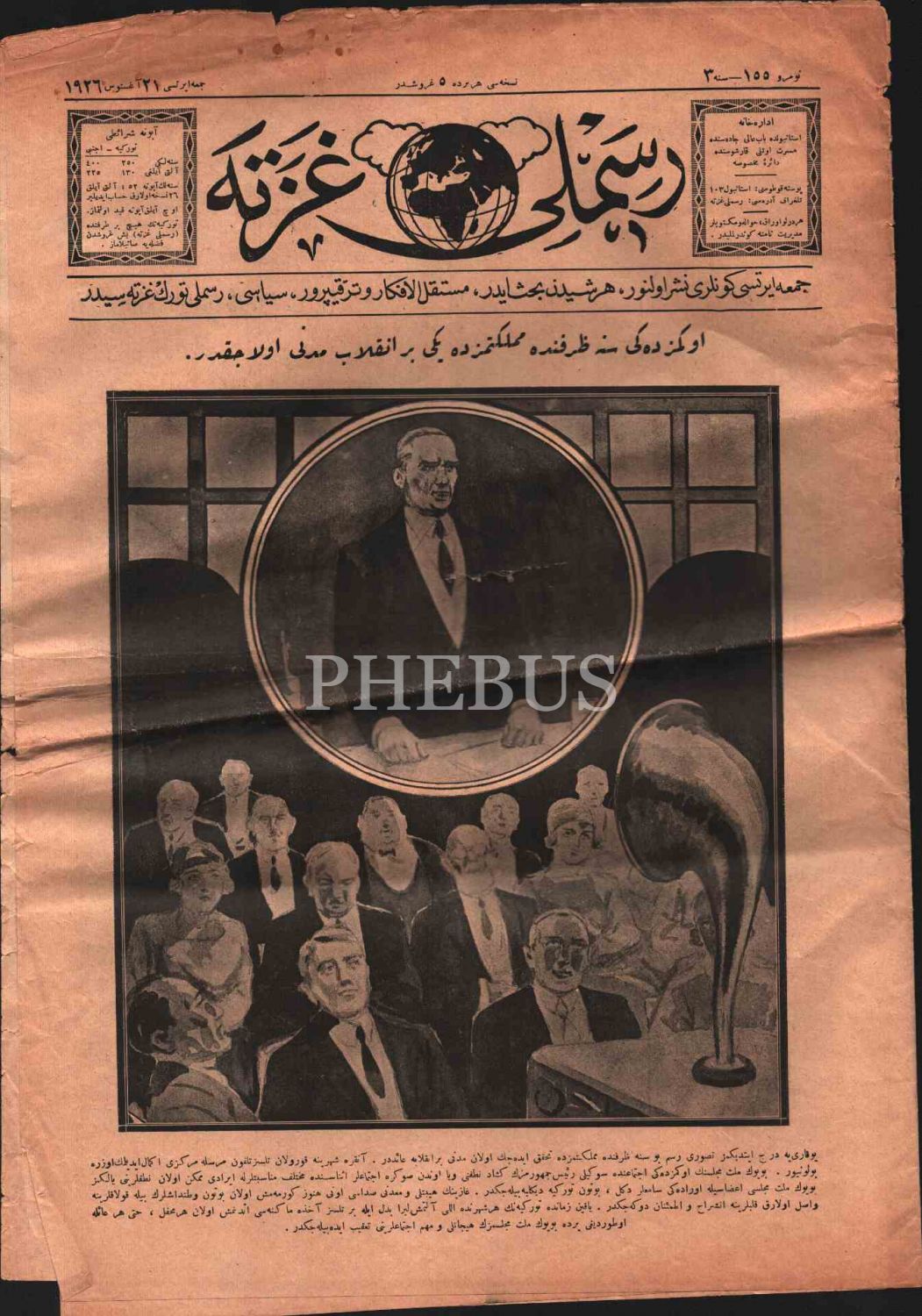 RESİMLİ GAZETE´nin Mustafa Kemal Atatürk tasvirli "Memleketimizde yeni bir inkılâb-ı medenî olacaktır" başlıklı sayısı, 21 Ağustos 1926, 28x41 cm