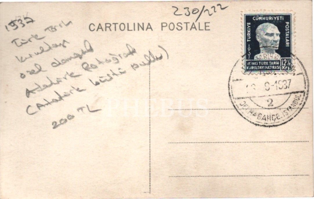 Mustafa Kemal Atatürk, 1937 Türk Tarih Kurultayı özel damgalı ve Atatürk büstü pullu