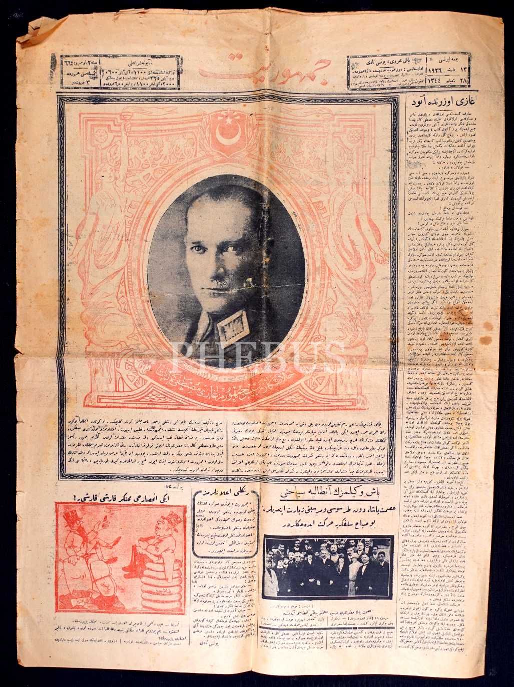 CUMHURİYET gazetesinin Halaskâr Gazi Mustafa Kemal Atatürk kapaklı sayısı, 13 Mart 1926, 45x62 cm