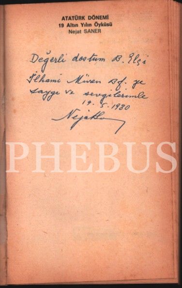İthaf, "Değerli dostum B. Elçi İlhami Müren Bf.´ye saygı ve sevgilerimle. 19.5.1980 Nejat Saner" şeklindedir.