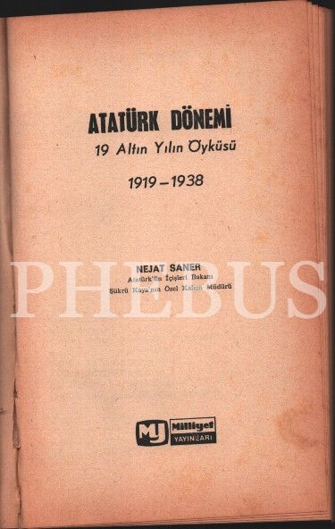 Nejat Saner´den ithaflı ve imzalı ATATÜRK DÖNEMİ (19 Altın Yılın Öyküsü - 1919-1938), Milliyet Yayınları, Kasım 1975, 296 sayfa, 12x20 cm