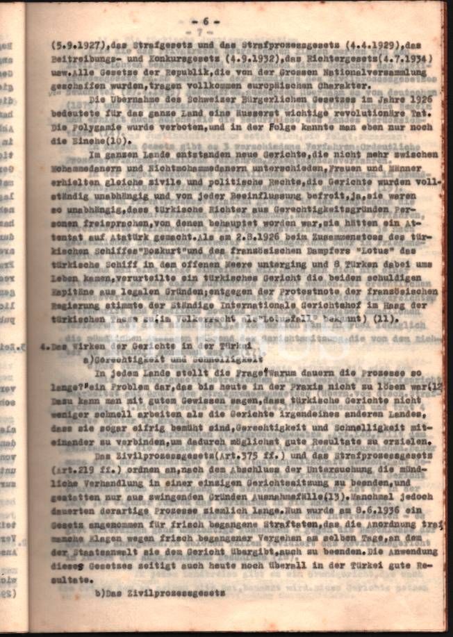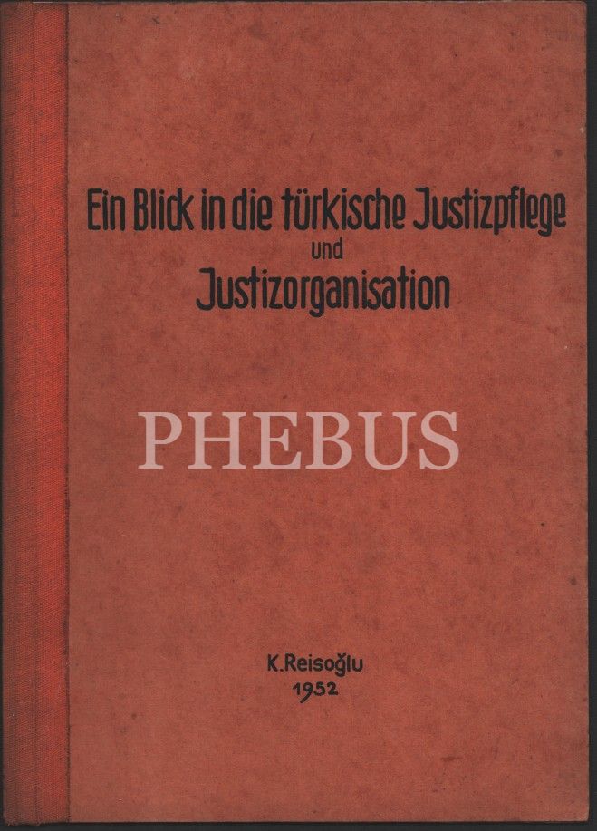 K. [Kemal] Reisoğlu´dan ithaflı ve imzalı EIN BLICK IN DIE TÜRKISCHE JUSTIZPFLEGE UND JUSTIZORGANISATION [Türk Adalet Yönetimine ve Yargı Teşkilâtına Bir Bakış], 12 sayfa, 22x30 cm