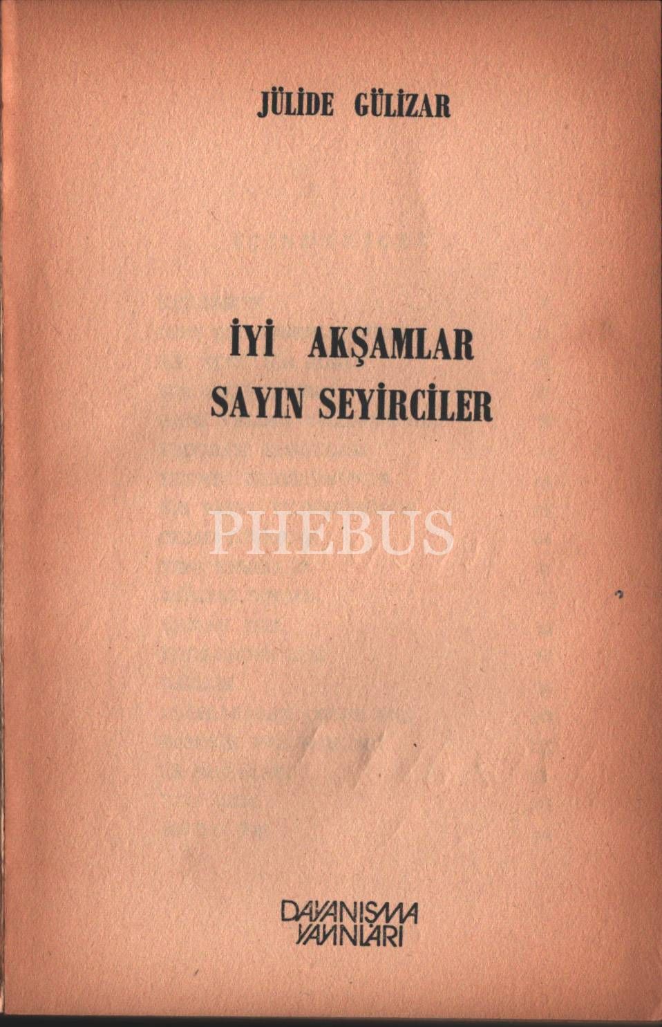 Jülide Gülizar´dan Taşçıoğlu ailesine ithaflı ve imzalı İYİ AKŞAMLAR SAYIN SEYİRCİLER, Dayanışma Yayınları, Ankara - 1982, 156 sayfa, 13x19 cm