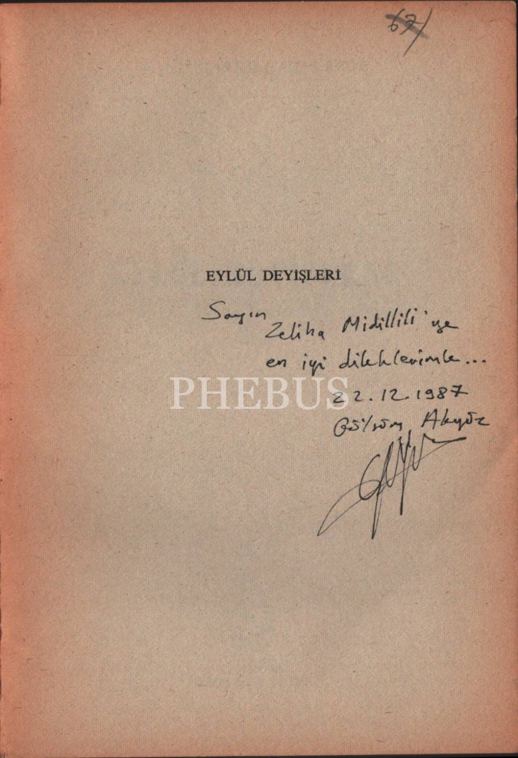 Gülsüm Akyüz´den ithaflı ve imzalı EYLÜL DEYİŞLERİ, Cem Yayınevi, İstanbul - Ekim 1987, 80 sayfa, 14x20 cm