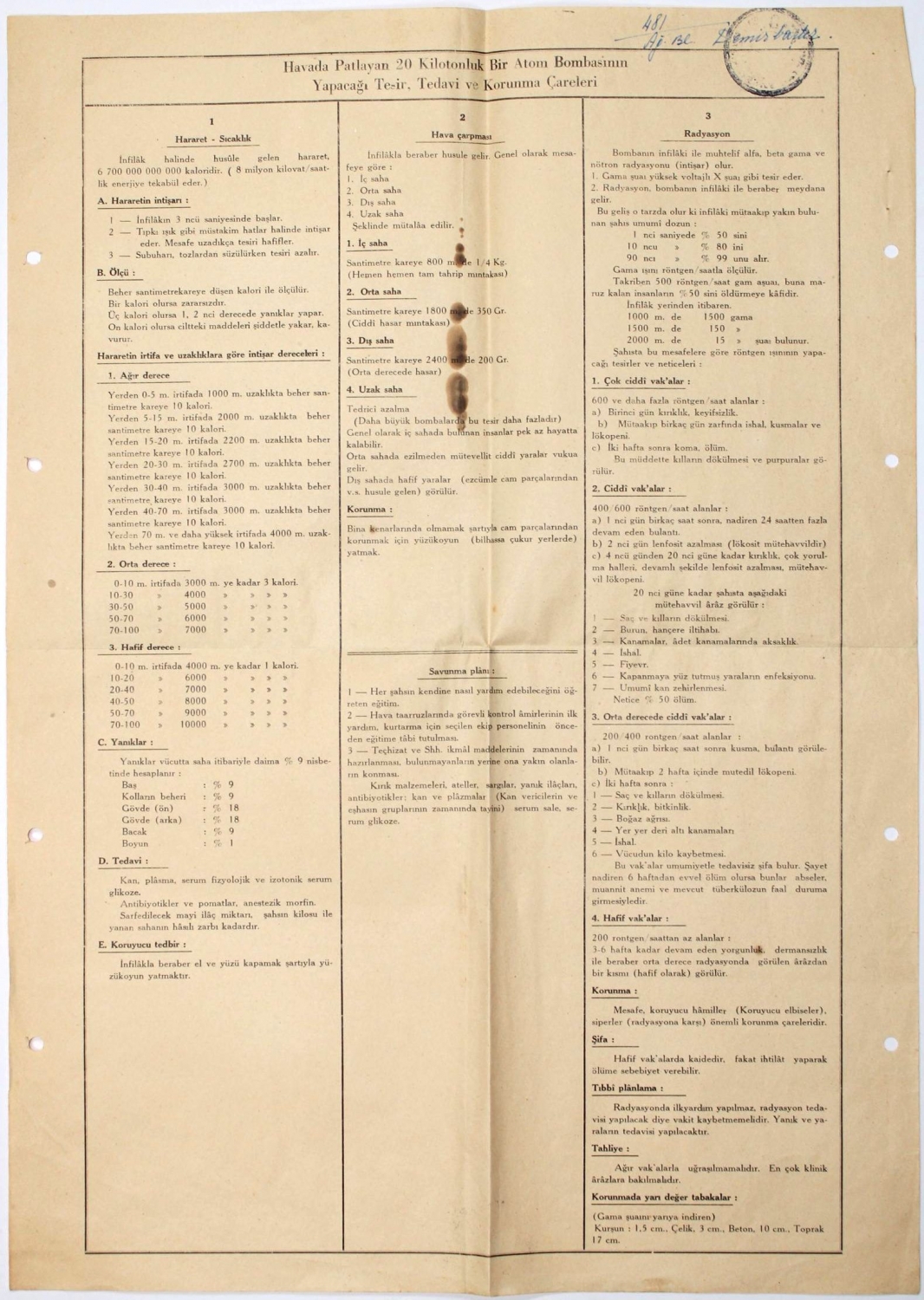Havada Patlayan 20 Kilotonluk Bir Atom Bombasının Yapacağı Tesir, Tedavi ve Koruma Çareleri afiş, 34x50 cm
