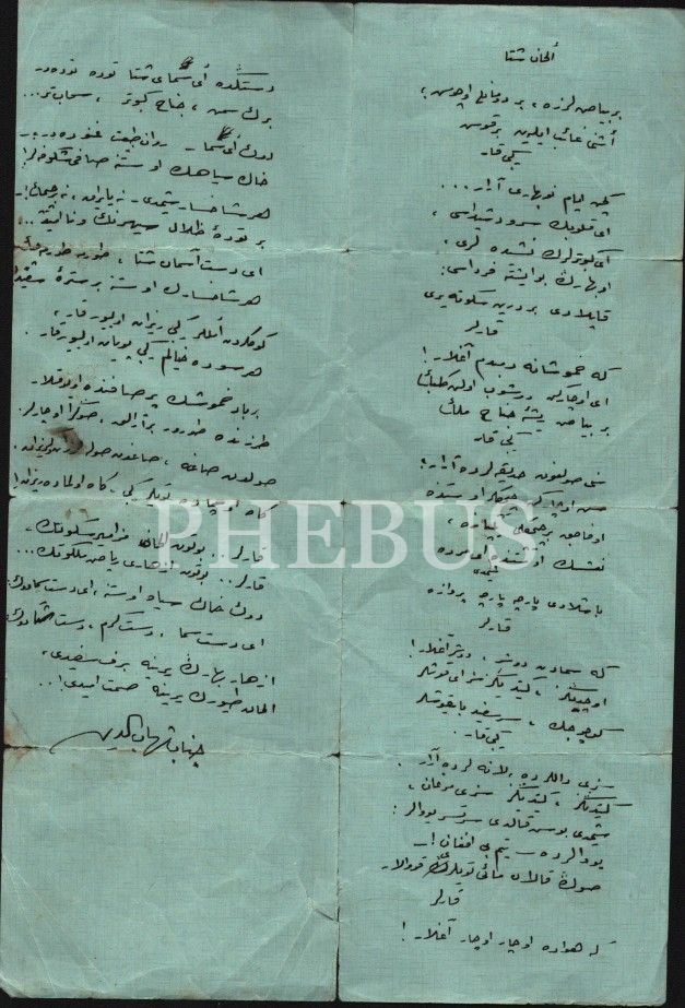 Cenab Şahabeddin imzası taşıyan, "Elhân-ı Şitâ" şiiri, 20x29 cm