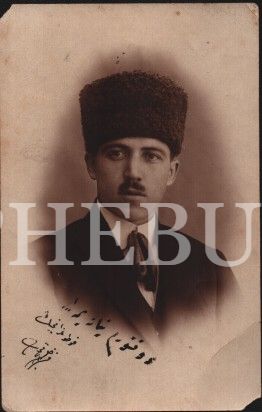 Fazıl Berki Tümtürk´ten Osmanlıca ithaflı ve imzalı fotoğraf, sol ve sağ üst köşesinde ufak kopuklar mevcut haliyle