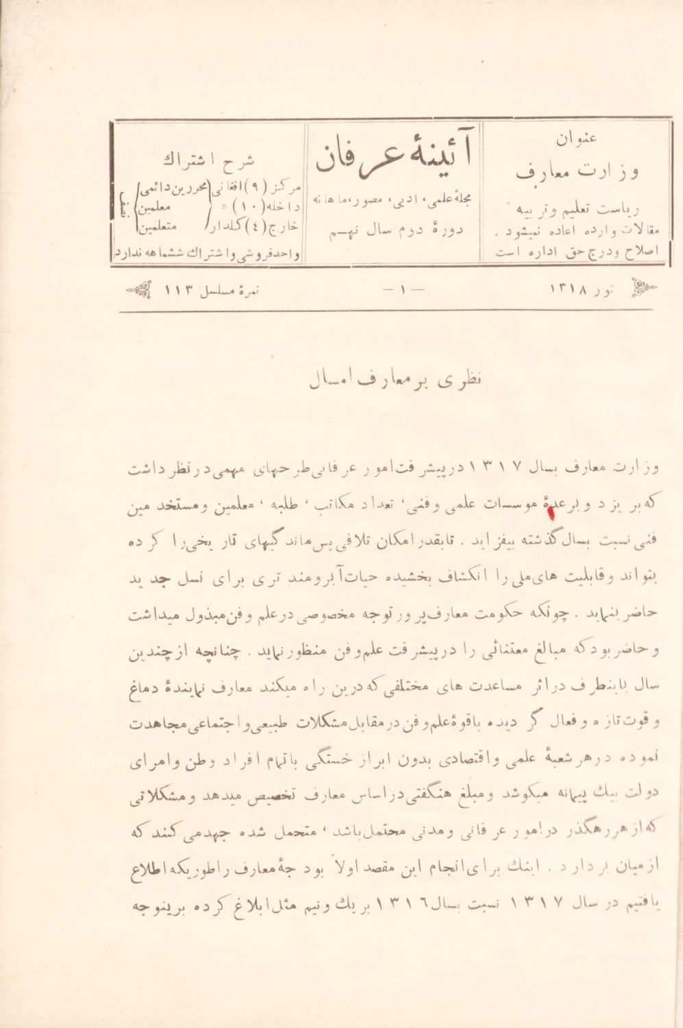 Ayine-i İrfan, 1318 tarihli dergi, resimli, 49 sayfa, 17x23 cm