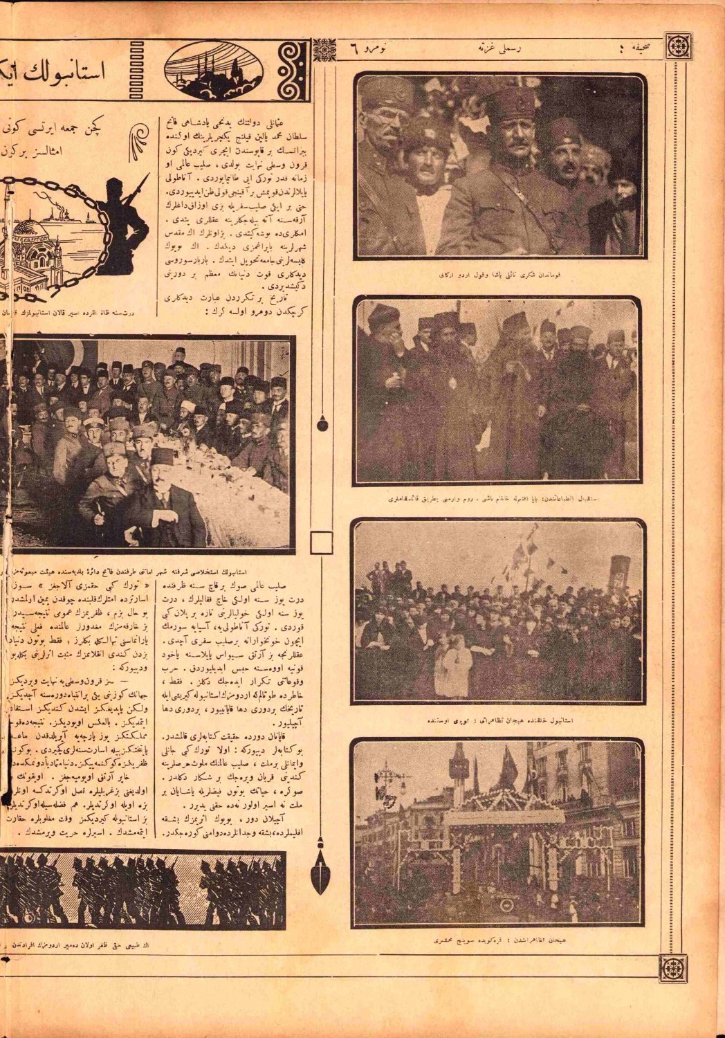 Osmanlı Resimli Gazete, 1339, "GİDENLERDEN KALAN ACI HATIRALARI UNUTMAYACAĞIZ. ONLARI KOVAN MEHMETÇİĞİ DE UNUTMAYALIM", cilt çıkması, 8 sayfa, 27x39 cm