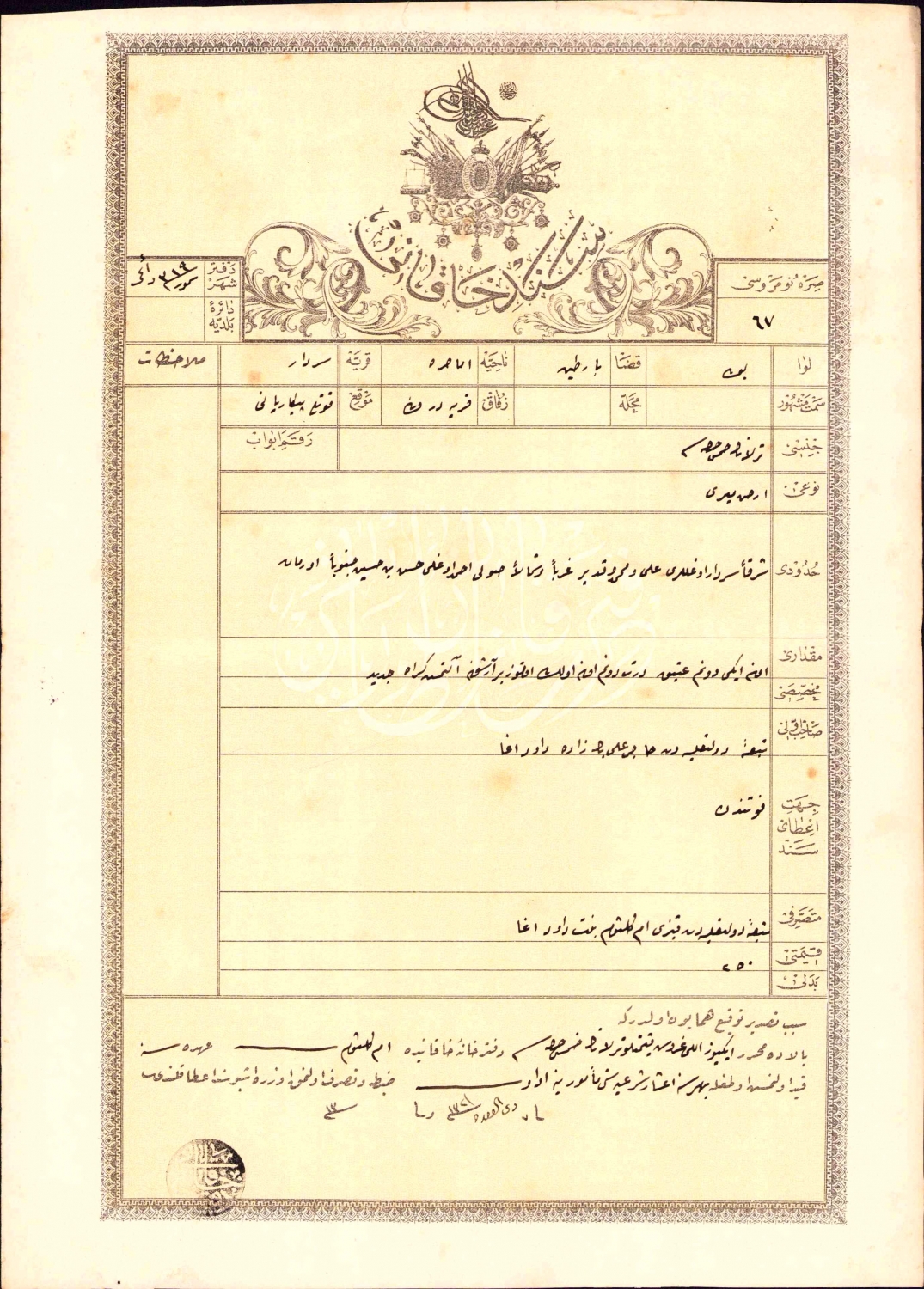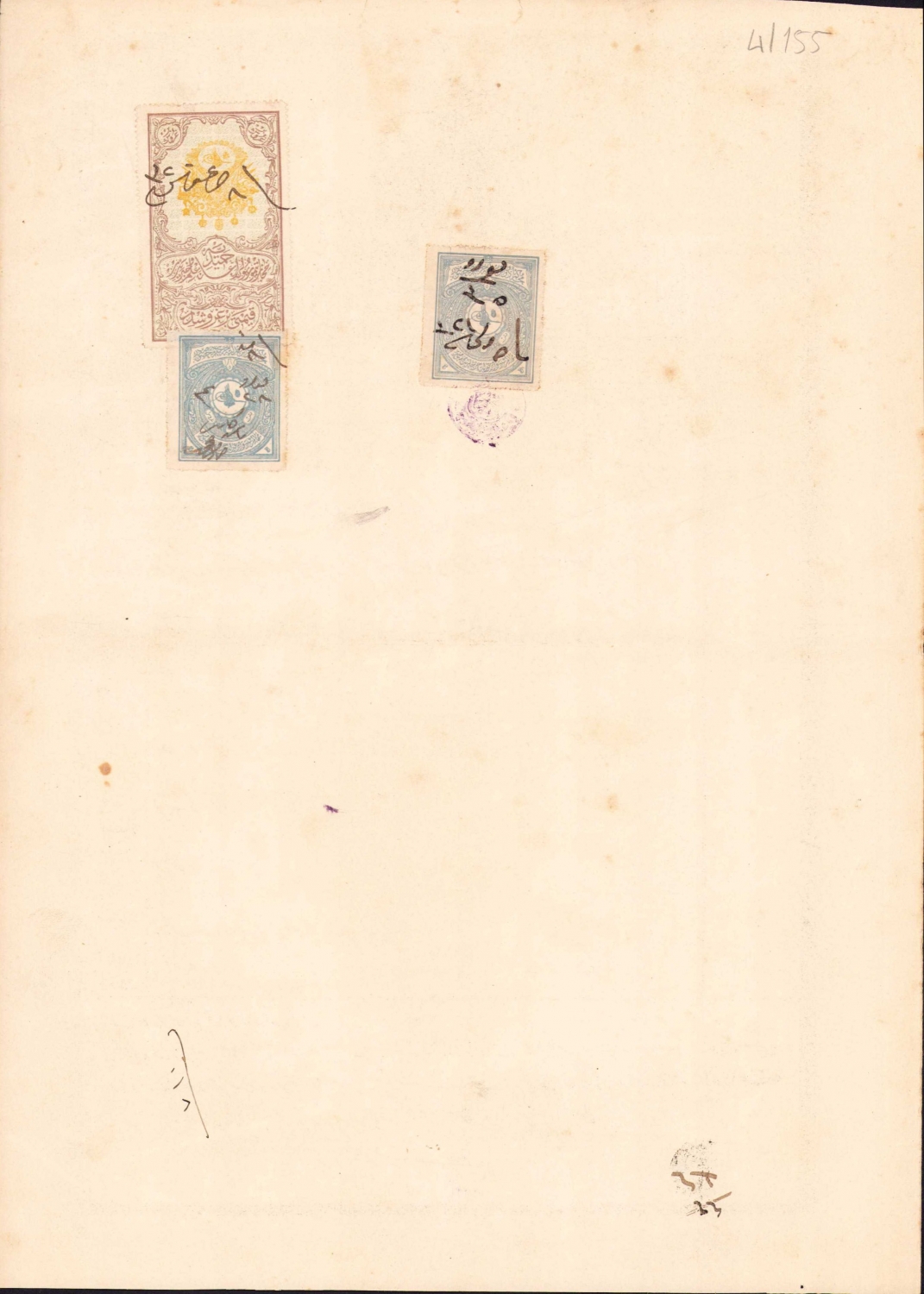 Osmanlı devlet armalı tuğralı tapu, il Bolu, kazası Bartın, arkası Hicaz pullu, 29x39 cm
