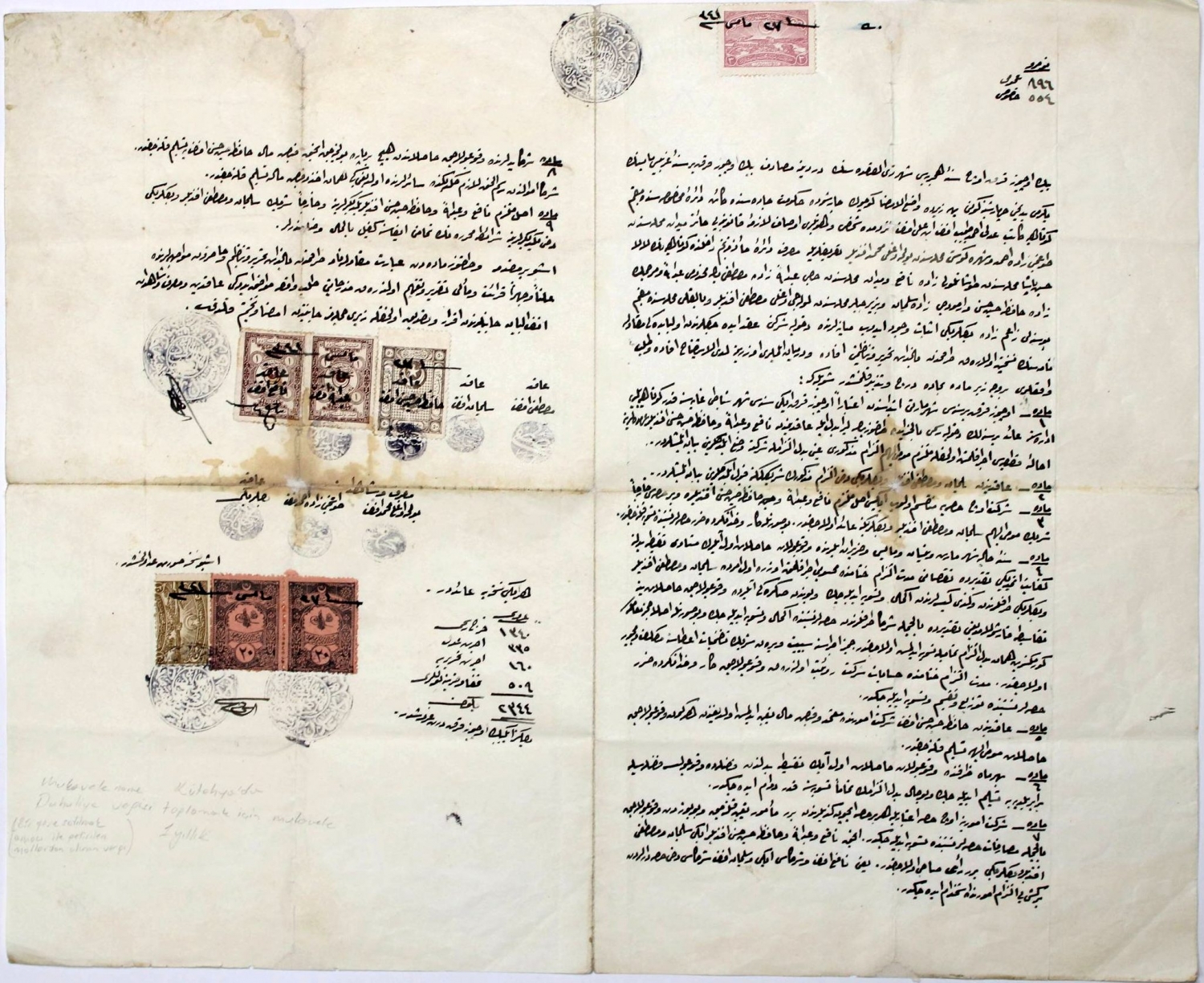 Osmanlıca Mukavelename, Kütahya, 1 yıllık duhuliye vergisi toplamak için yazılan evrak, 1341 tarihli, damgalı, pullu